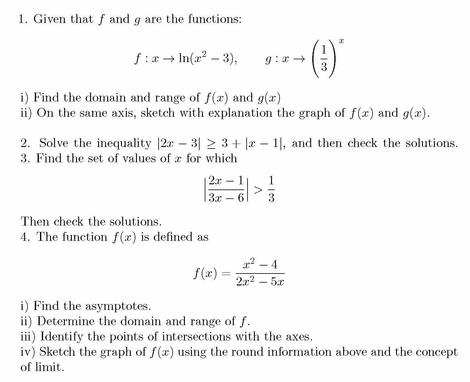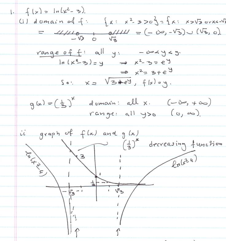 1. Given that f and g are the functions: f : x → ln(x 2 − 3),...