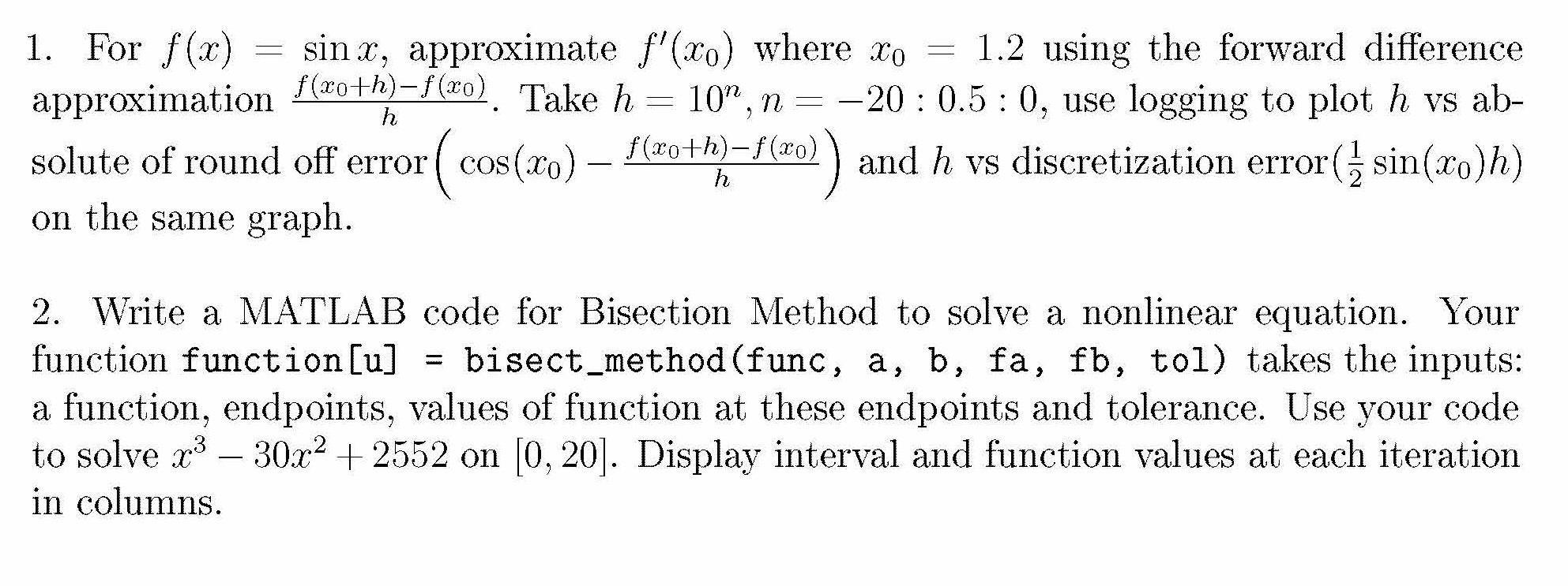 1. For f(x) = sinz, approximate f'(Io) where To = 1.2 using the for...