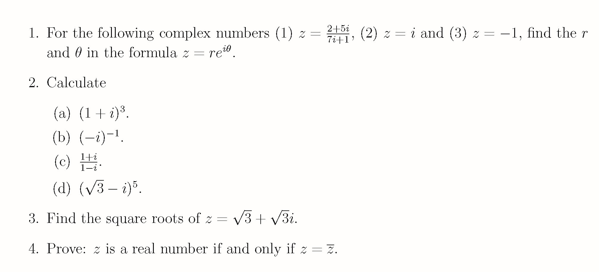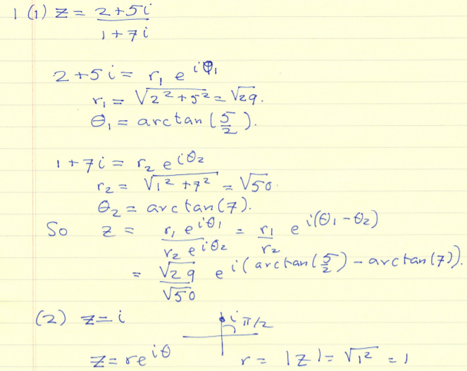 1. For the following complex numbers (1) z = 2+5i 7i+1 , (2) z =...