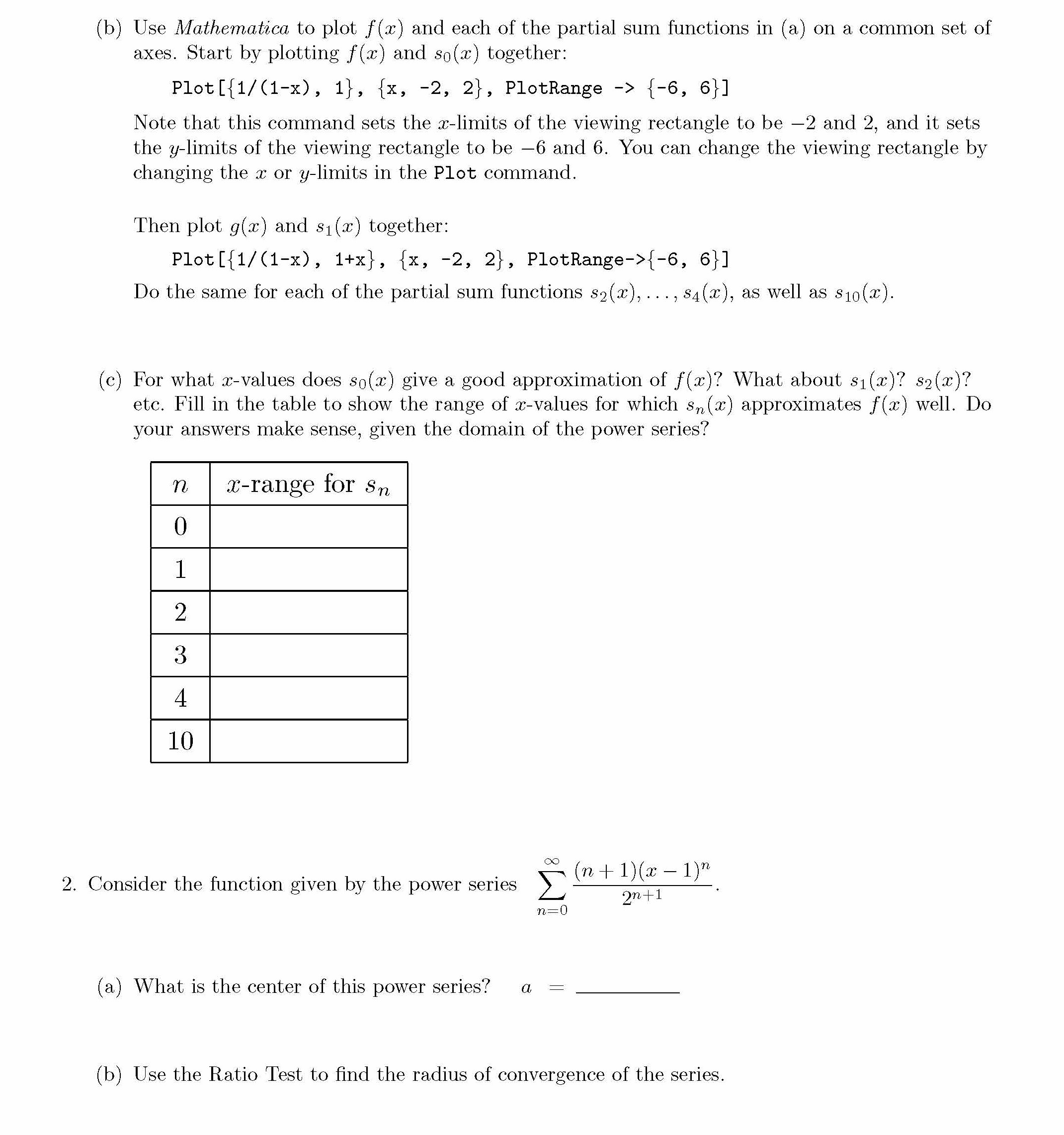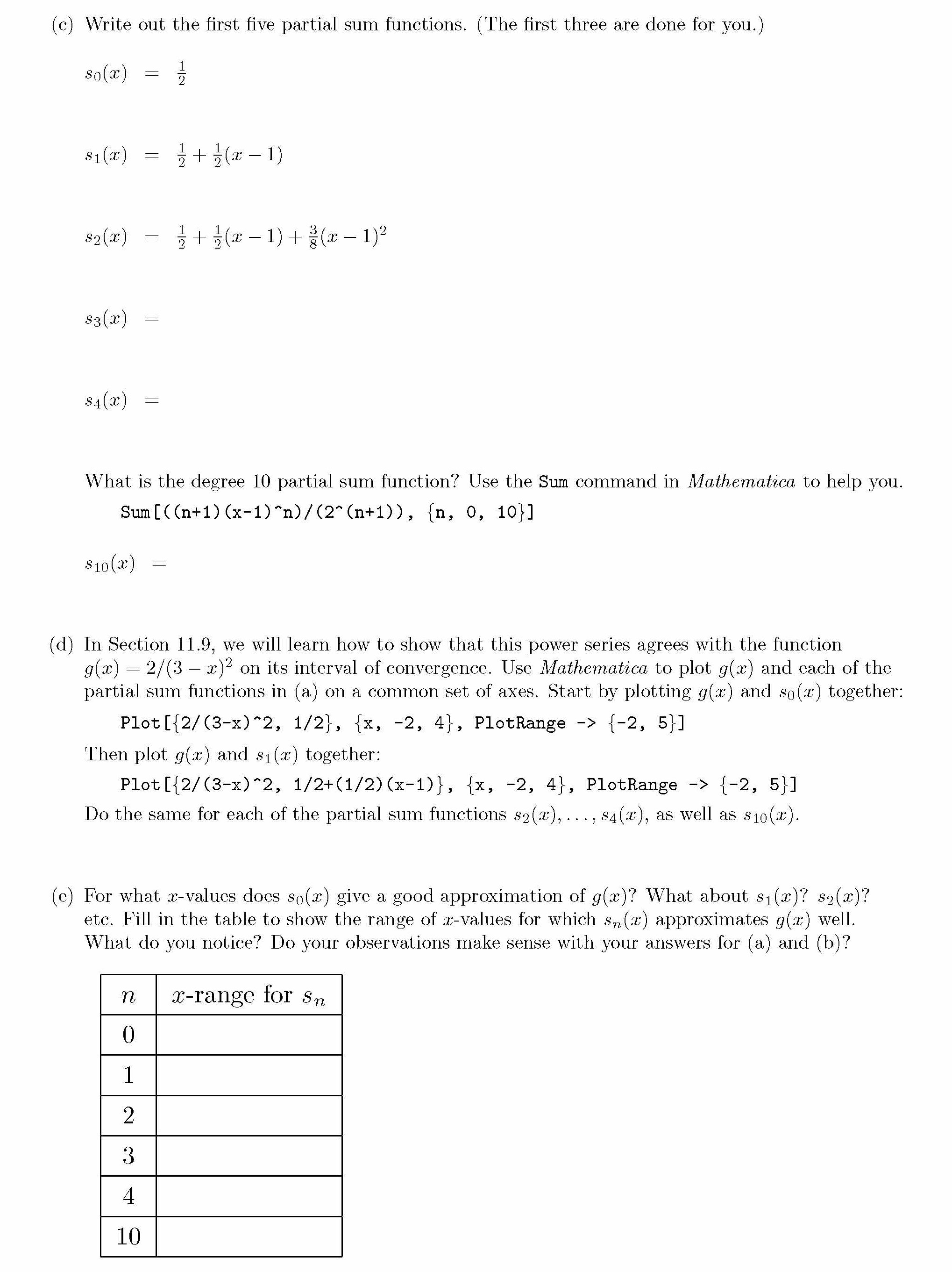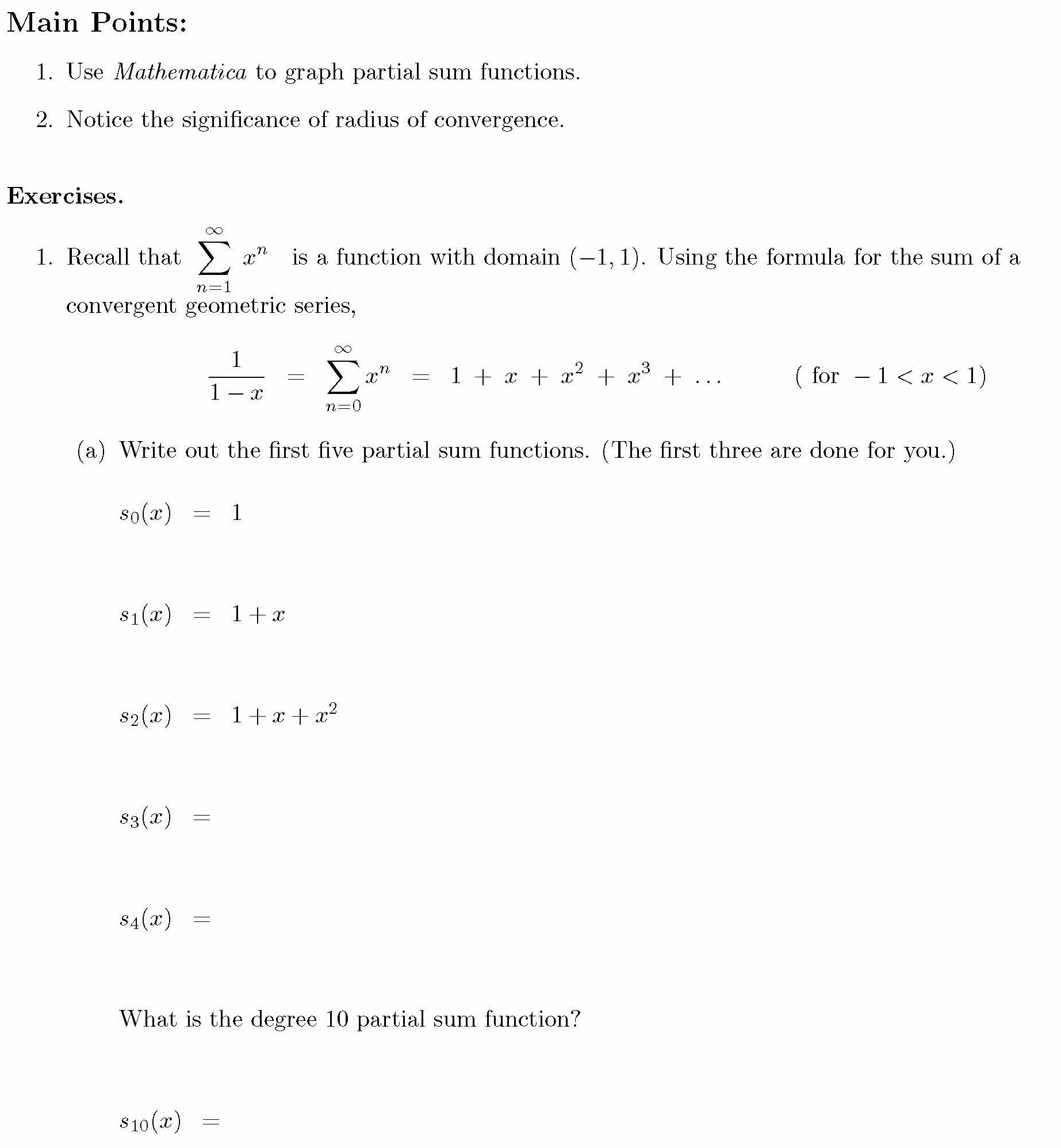 Main Points: 1. Use Mathematica to graph partial sum functions. 2...