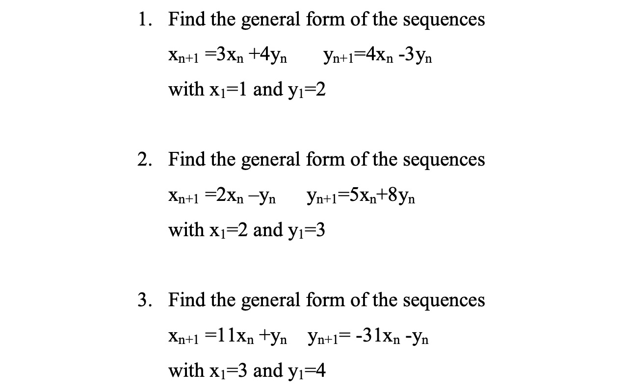 1. Find the general form of the sequences xn+1 =3xn +4yn yn+1=4xn...
