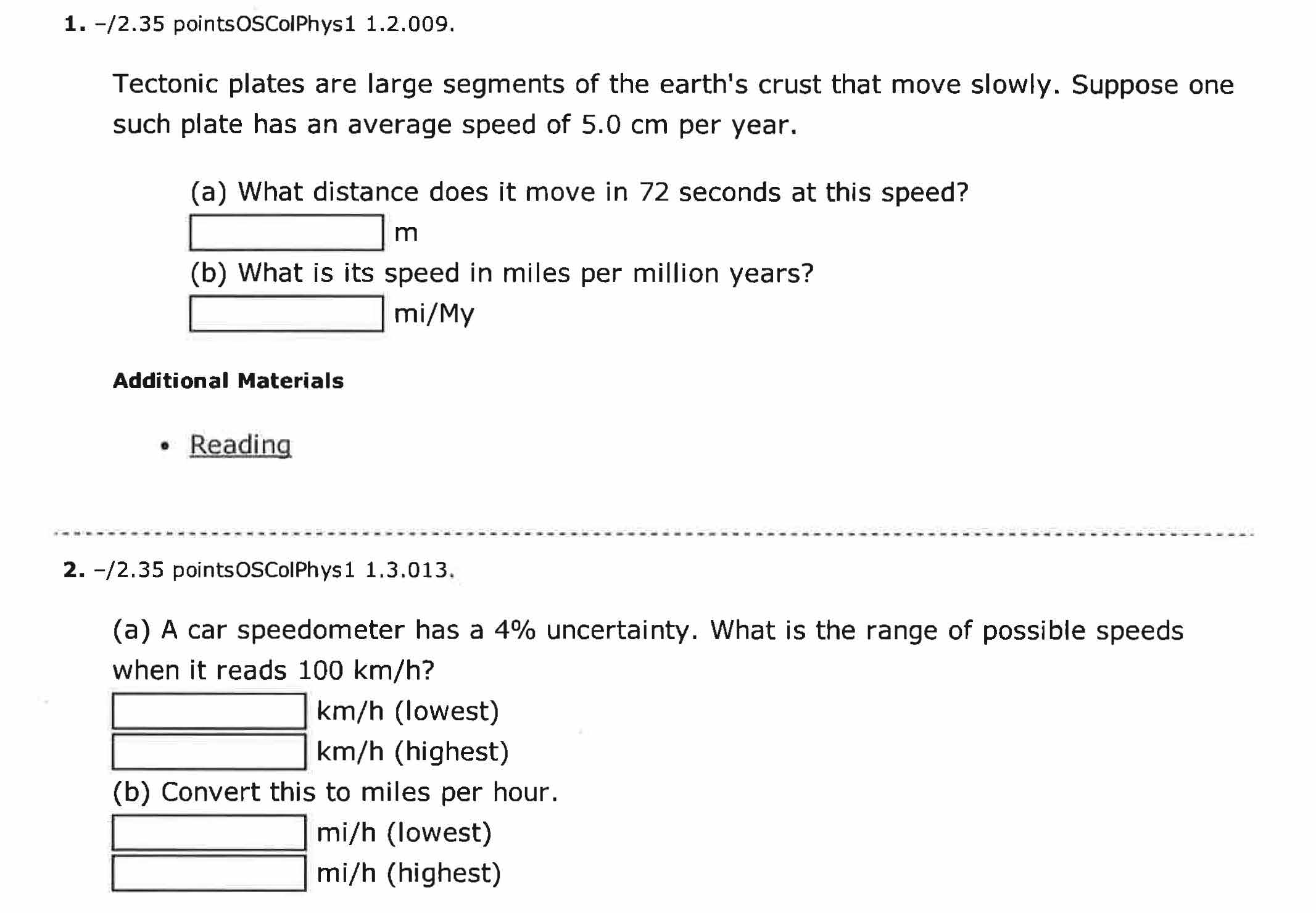 1. -/2.35 pointsOSColPhys1 1.2.009. Tectonic pi ates are large seg...