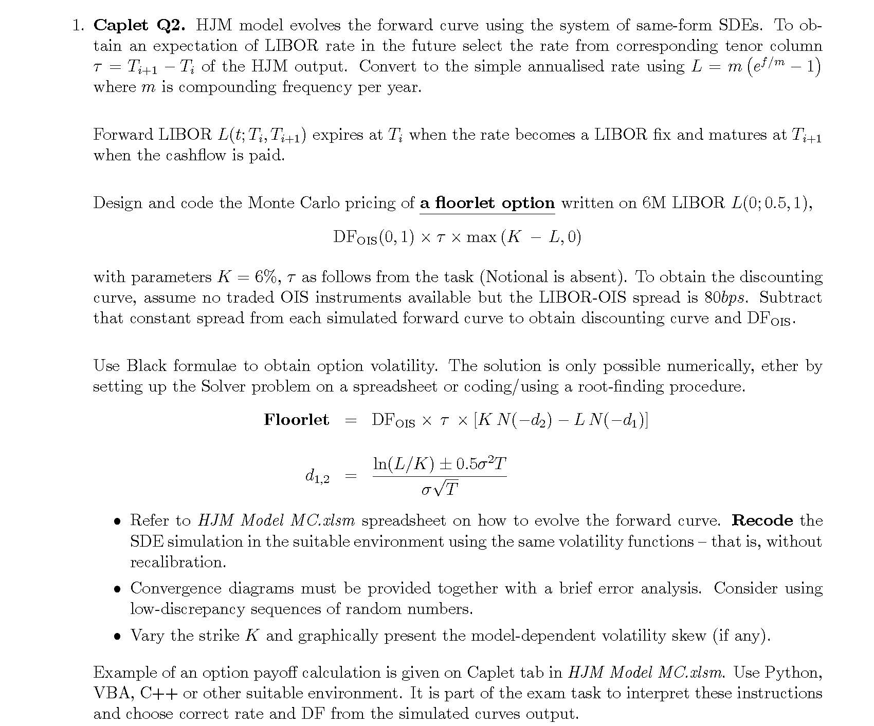1. Caplet Q2. HJM model evolves the forward curve using the system ...