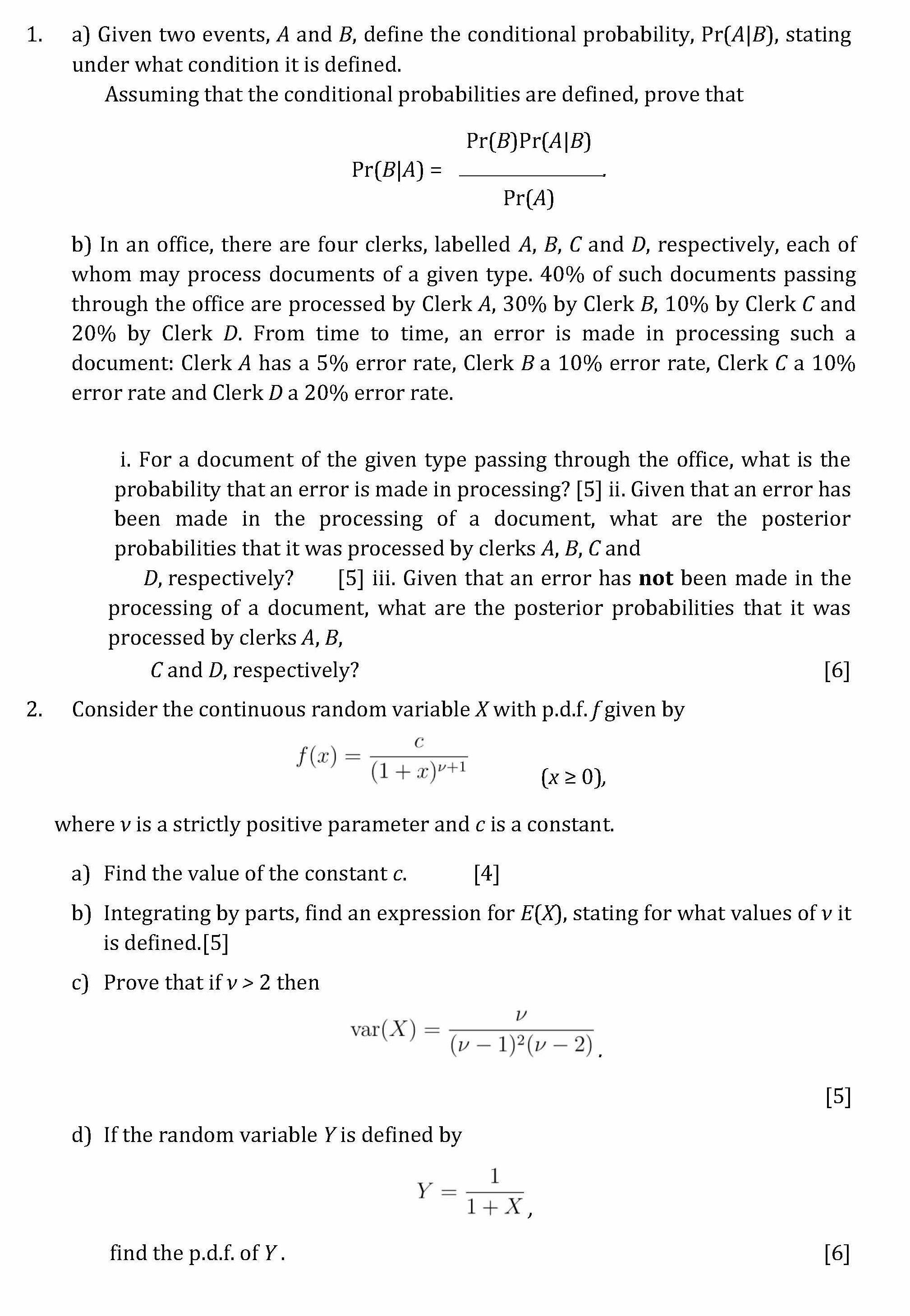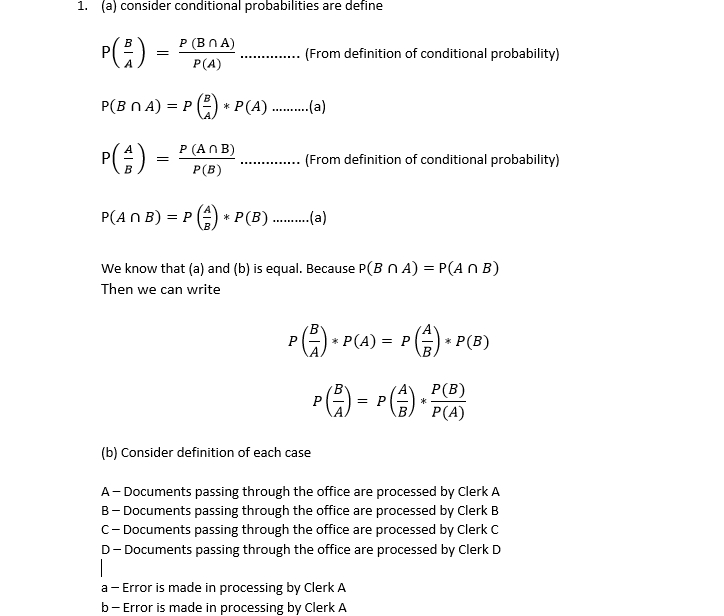 1. a) Given two events. Aand define the conditional probability, P...