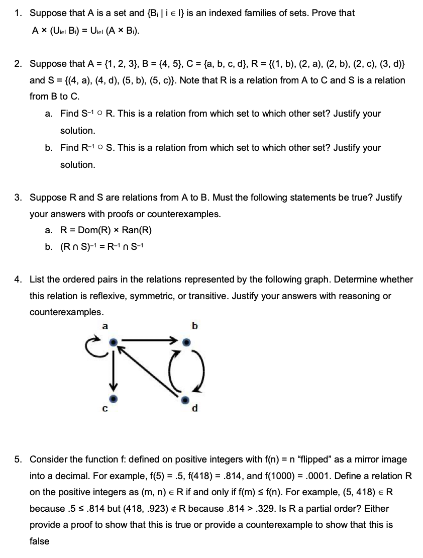 1. Suppose that A is a set and {Bi ie |} is an indexed families of...