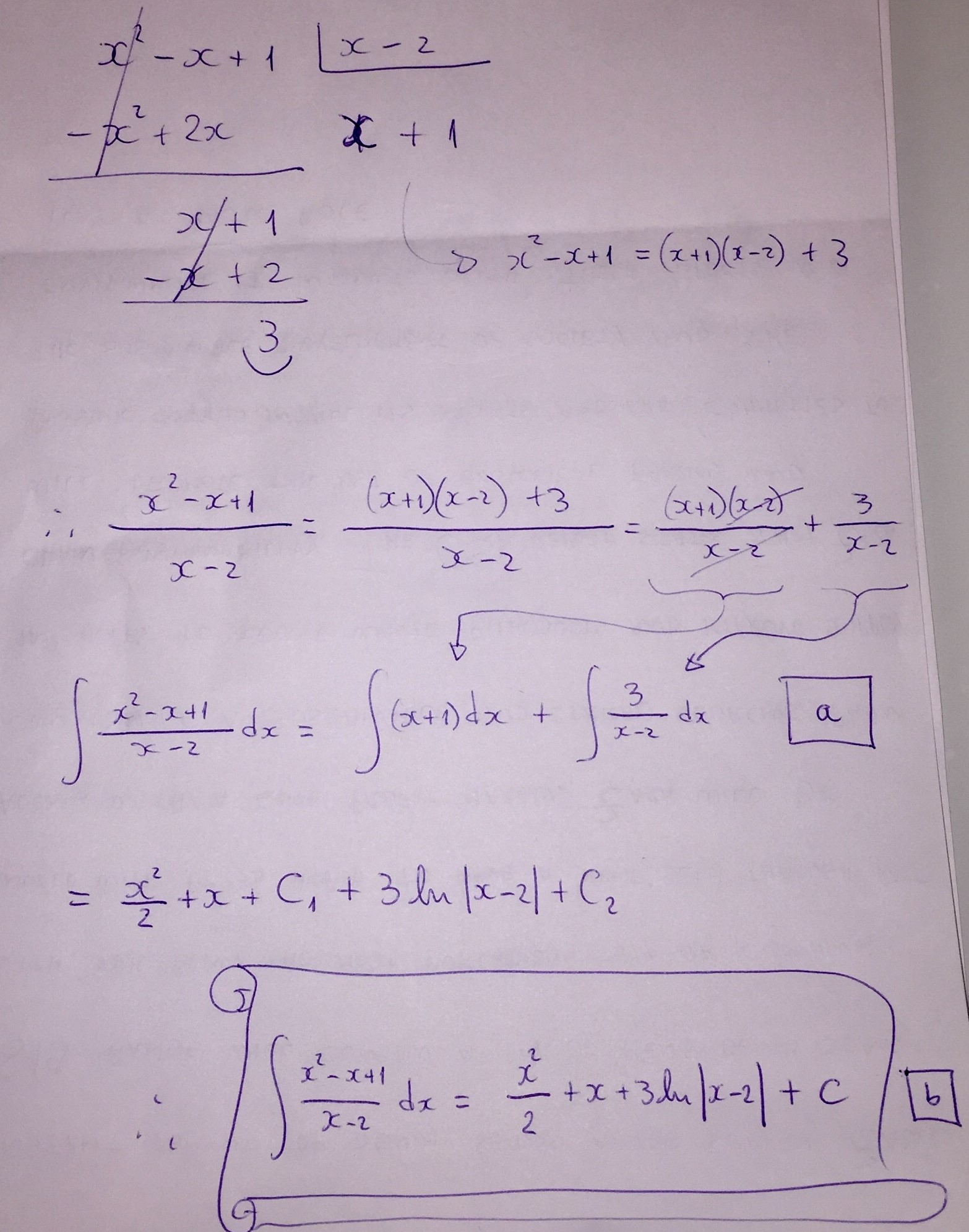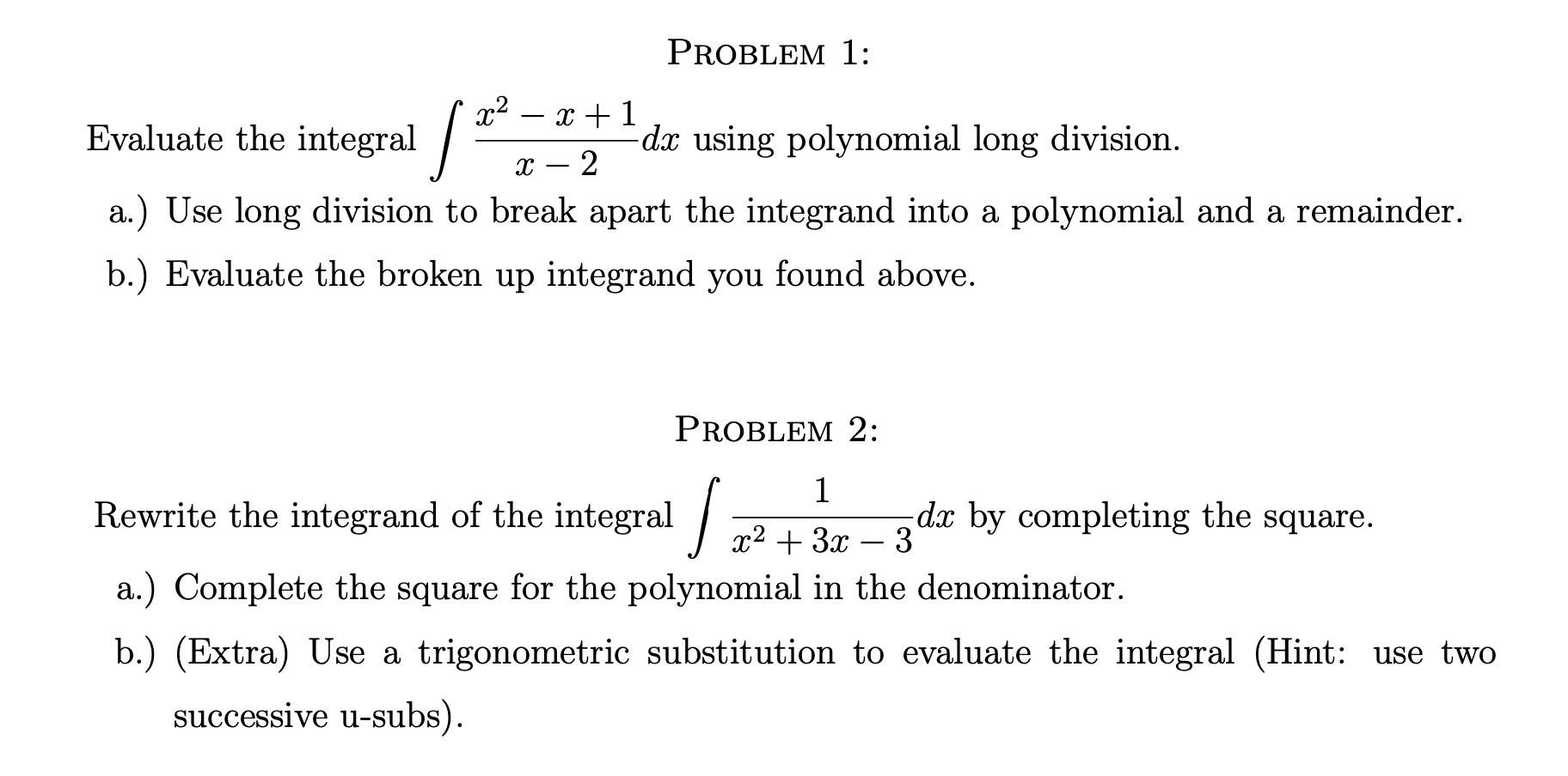 Problem 1: Evaluate the integral Z x 2 − x + 1 x − 2 dx us...
