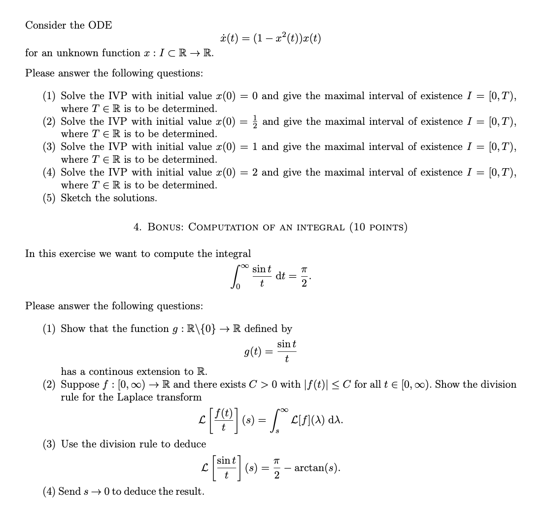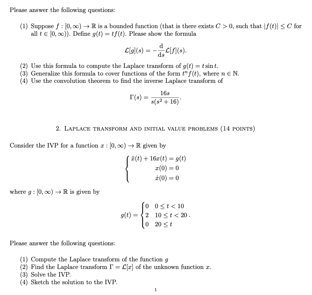Please answer the following questions: (1) Suppose f : [0, ∞)...