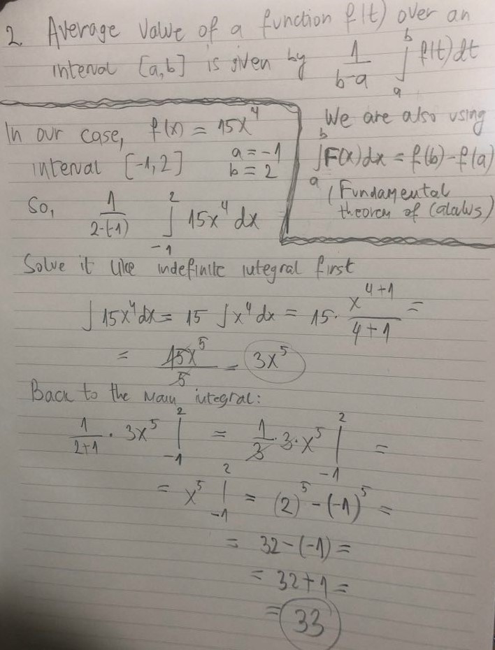Q2) 8pts What is the average value over the interval [-1,2] for the...