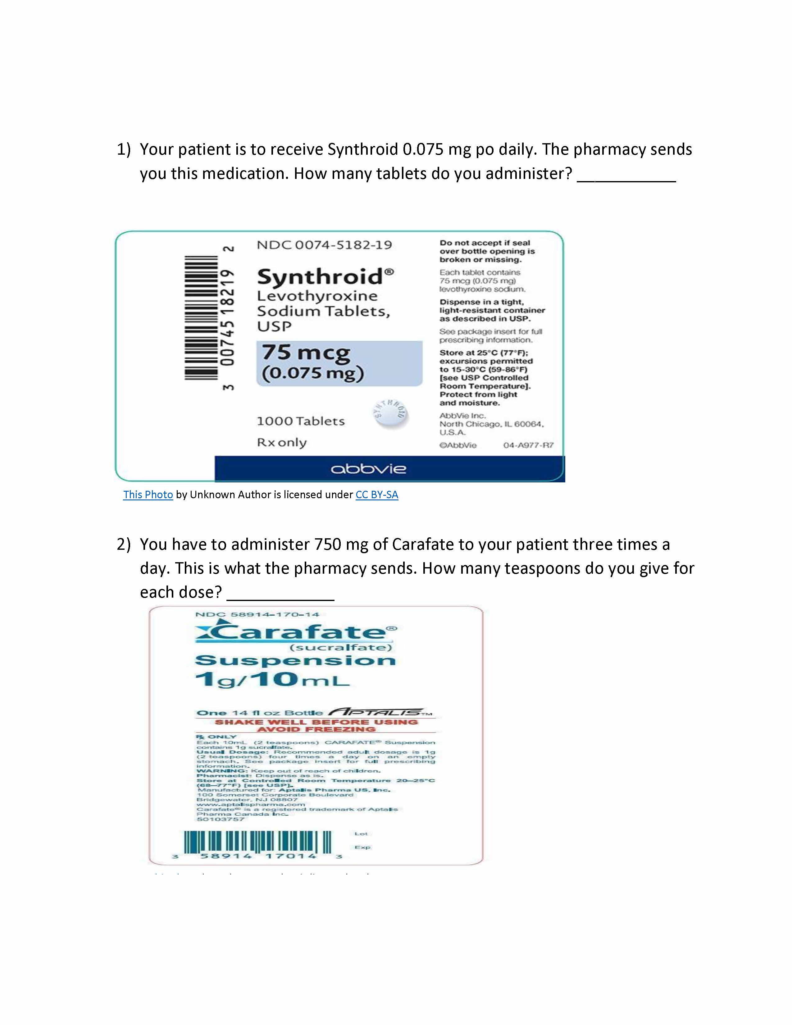 1) Your patient is to receive Synthroid 0.075 mg po daily. The phar...