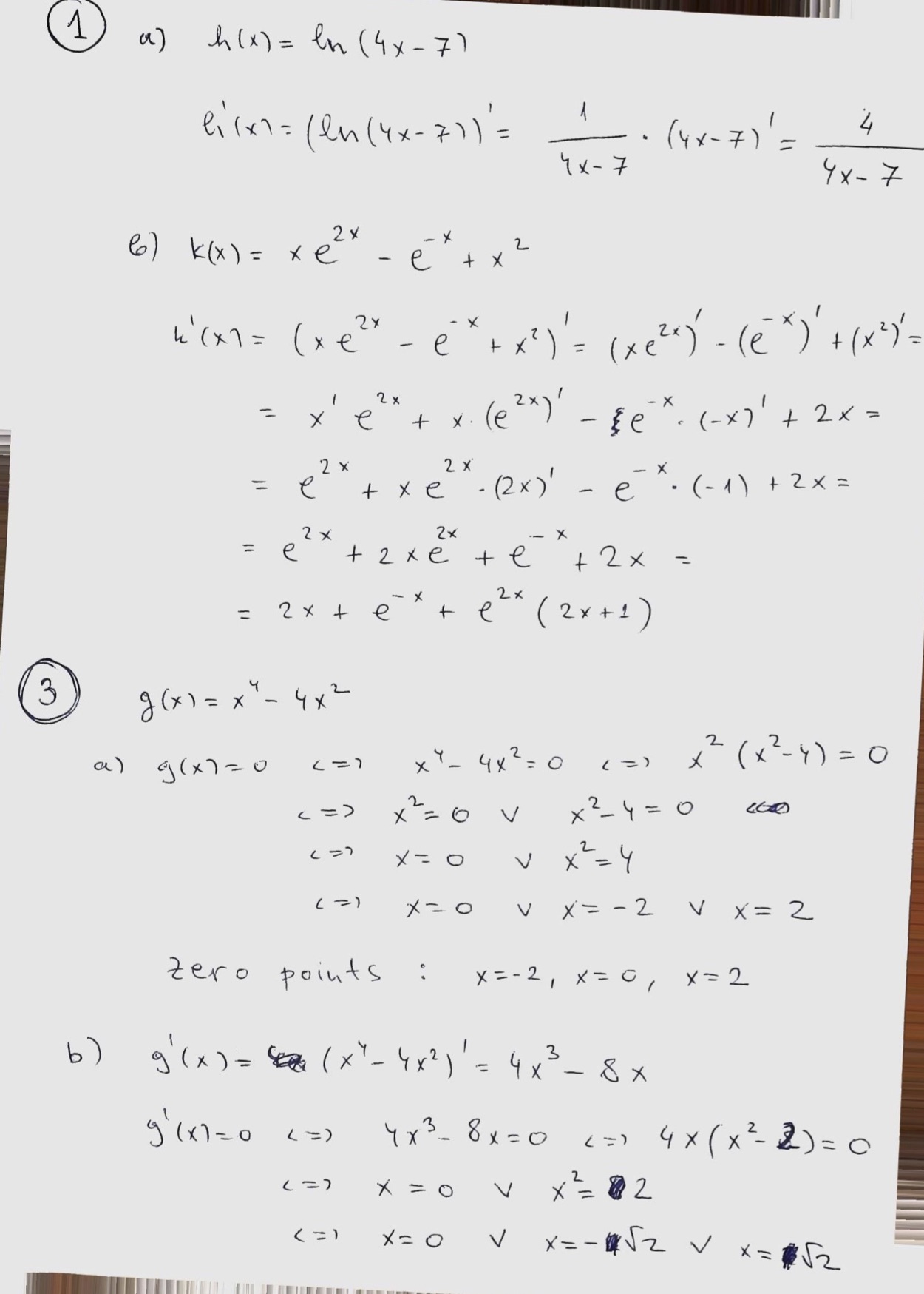 Task 1 a) Derive the function h(ð‘¥) = ln(4𑥠− 7). b) Deri...