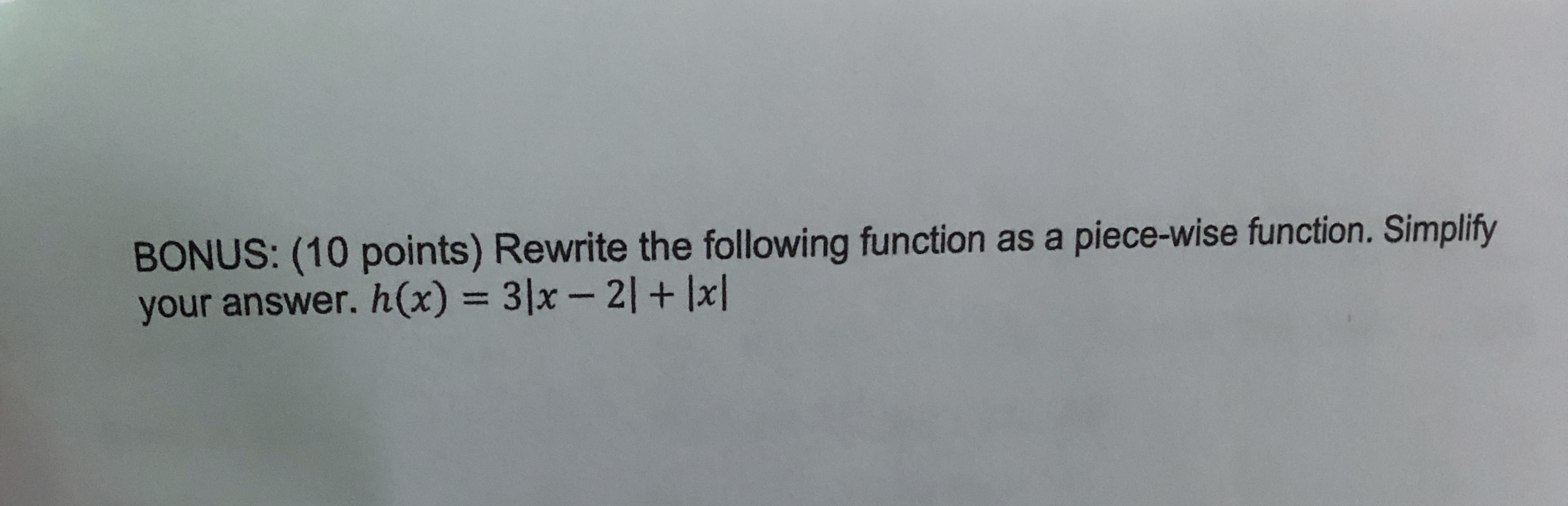 BONUS: (10 points) Rewrite the following function as a piece-wise f...