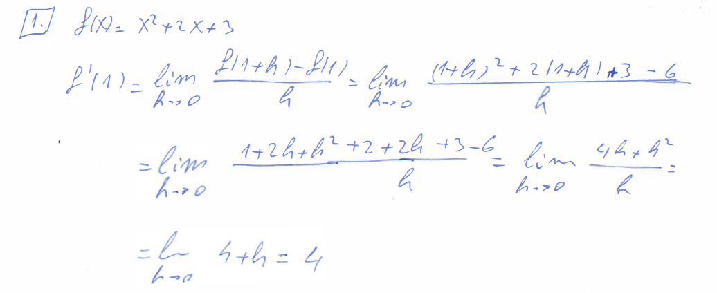 1. (5 points) Calculate the derivative of f (x) = x² + 2x + 3 at...