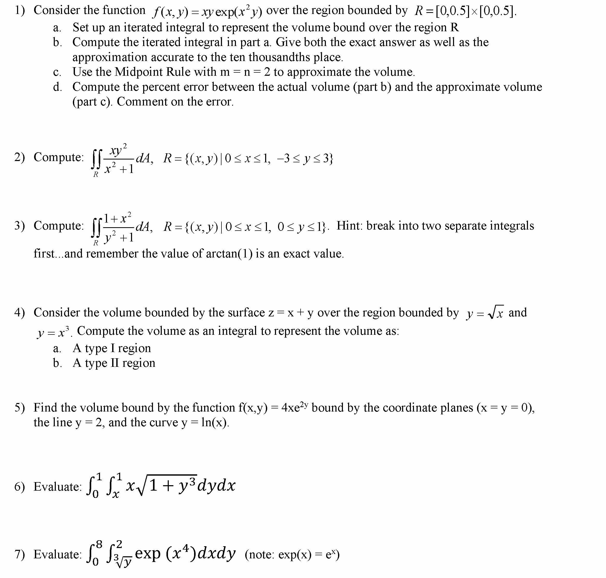 HOMEWORK SET 9 1) Consider the function f(x,y) = xyexp(x² over t...