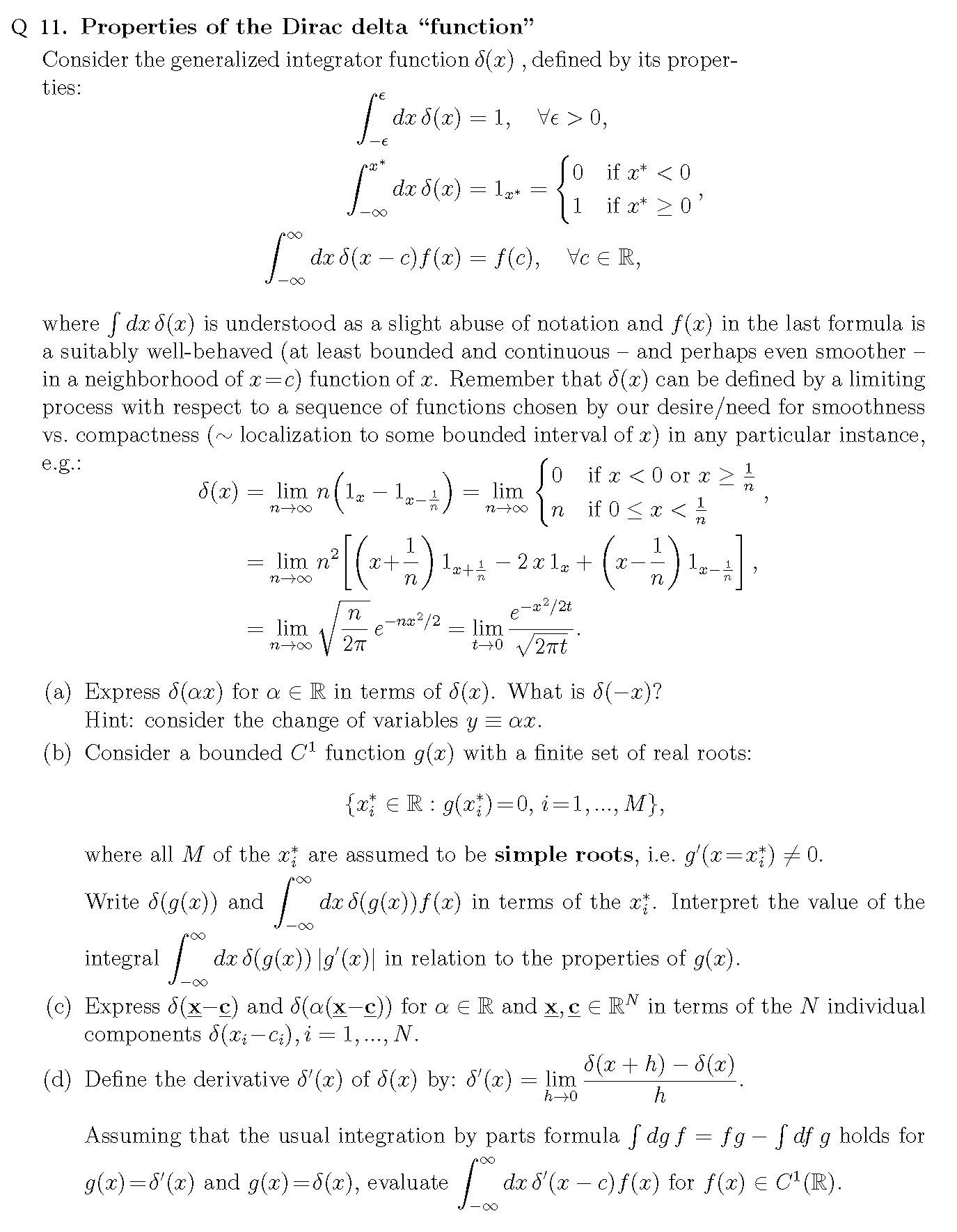 Q 11. Properties of the Dirac delta “function†Consider the ge...