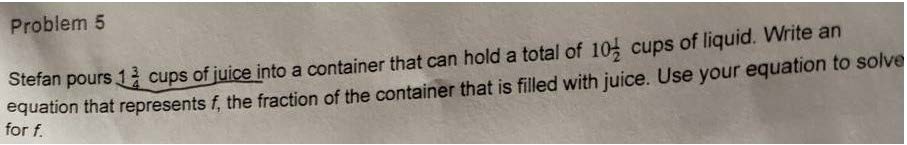 Problem 5 Stefan pours 1 1 cups of juice into a container that can...
