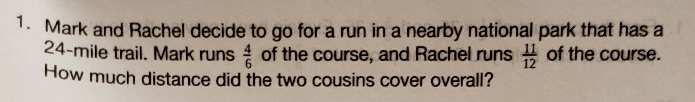 1. Mark and Rachel decide to go for a run in a nearby national park...