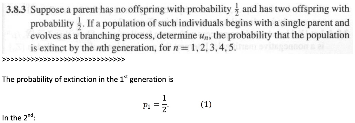 3.8.3 Suppose a parent has no offspring with probability 1/2 and ha...