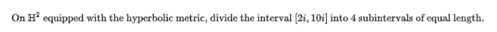On H² equipped with the hyperbolic metric, divide the interval [2i...
