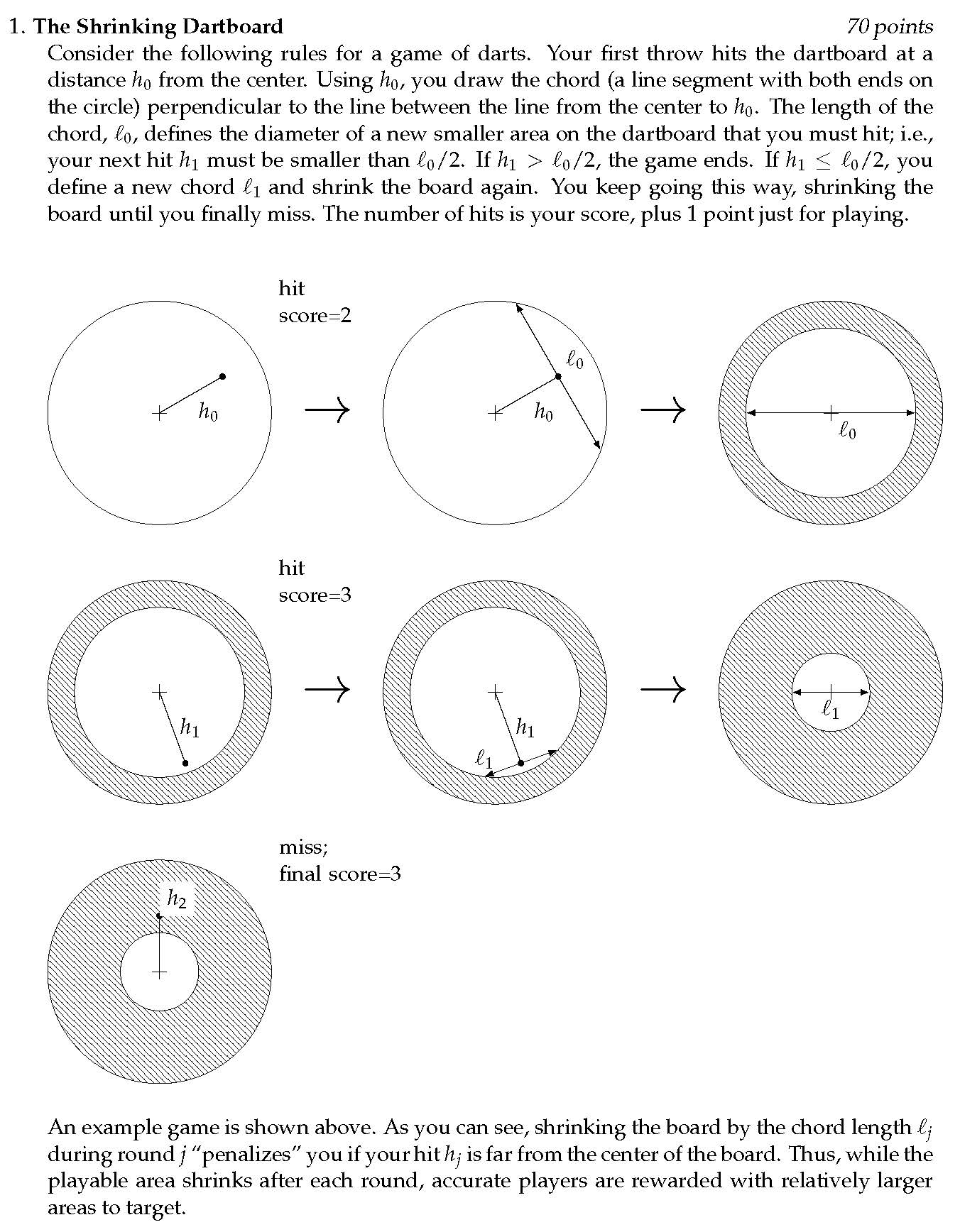 1. The Shrinking Dartboard 70 points Consider the following rules...