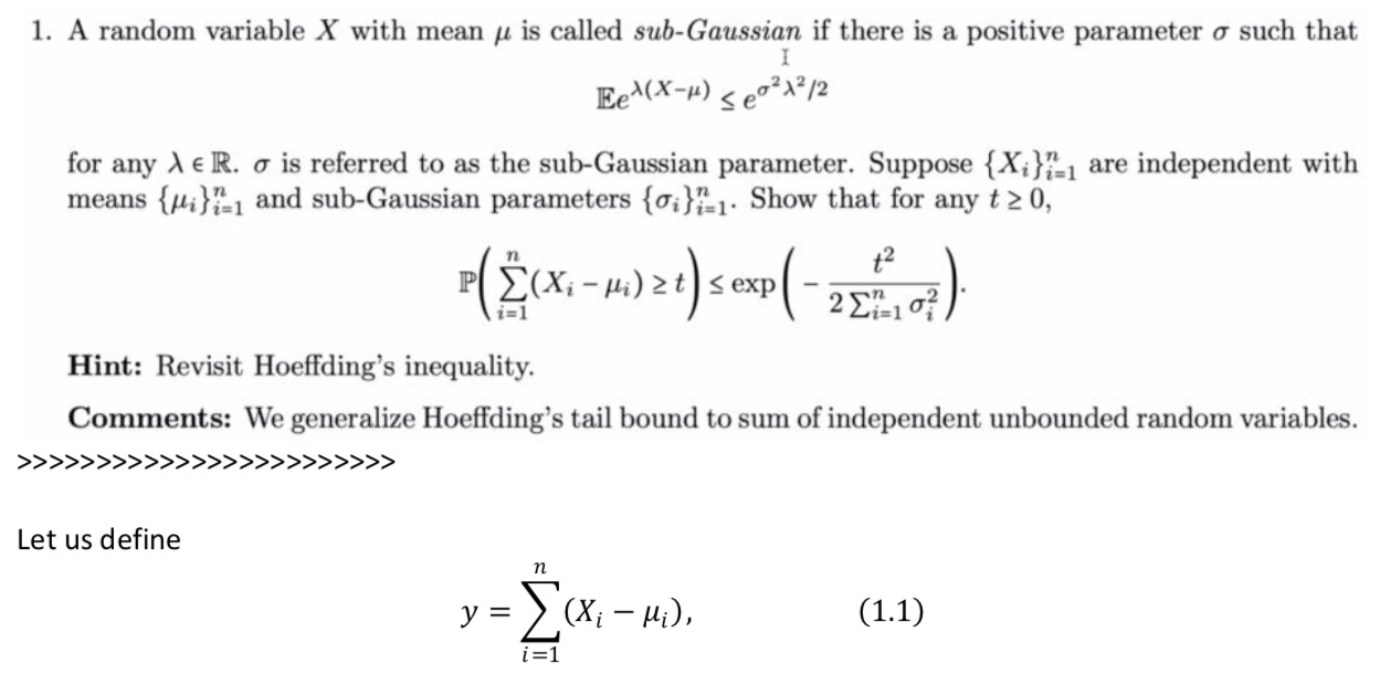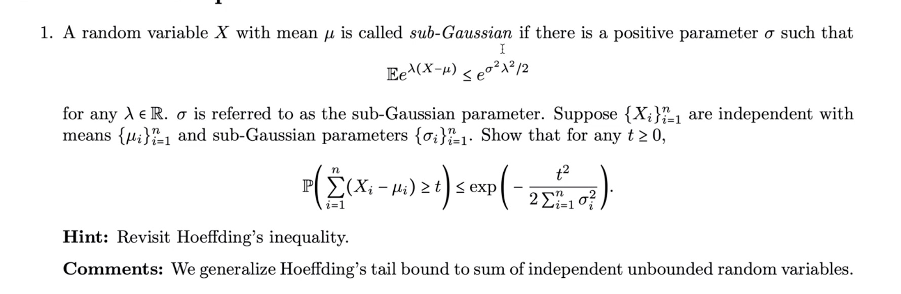 1. A random variable X with mean u is called sub-Gaussian if there...