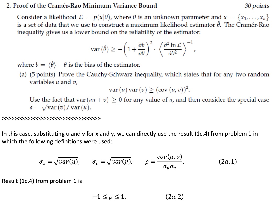2. Proof of the Cramér-Rao Minimum Variance Bound 30 points Co...