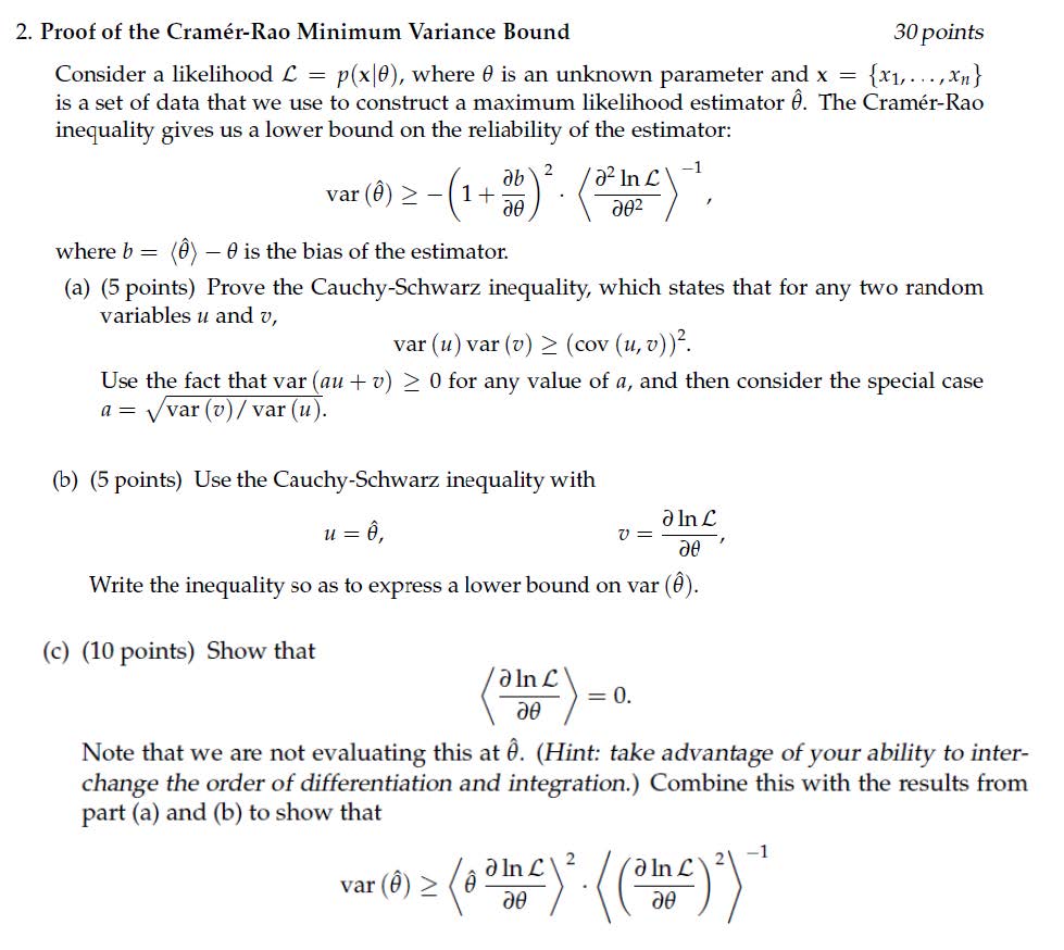 2. Proof of the Cramér-Rao Minimum Variance Bound 30 points Cons...