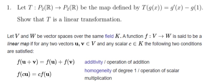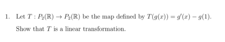1. Let T: P2(R) P2(R) be the map defined by T(g(x)) = g'(x) - g(1)...