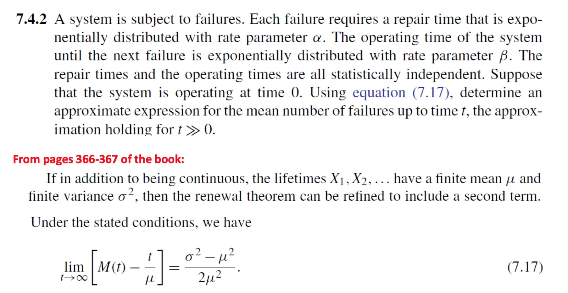 7.4.2 A system is subject to failures. Each failure requires a repa...