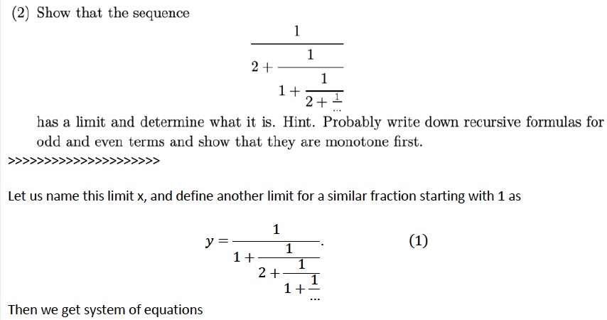 (2) Show that the sequence 1 1 2+ 1 1 + 2 + 1 has a limit and...