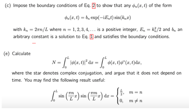 (c) Impose the boundary conditions of Eq. 2 to show that any n(x,...