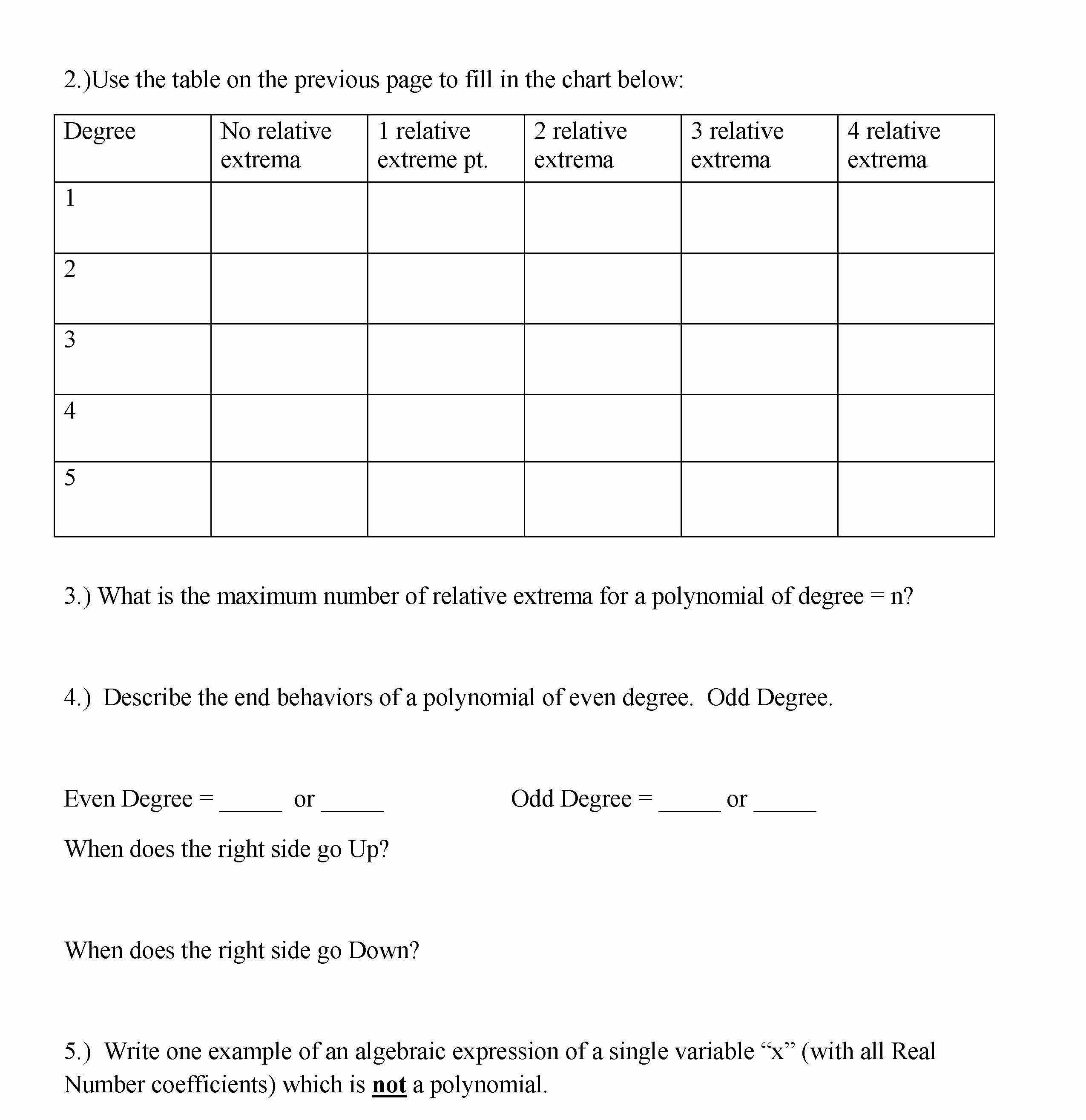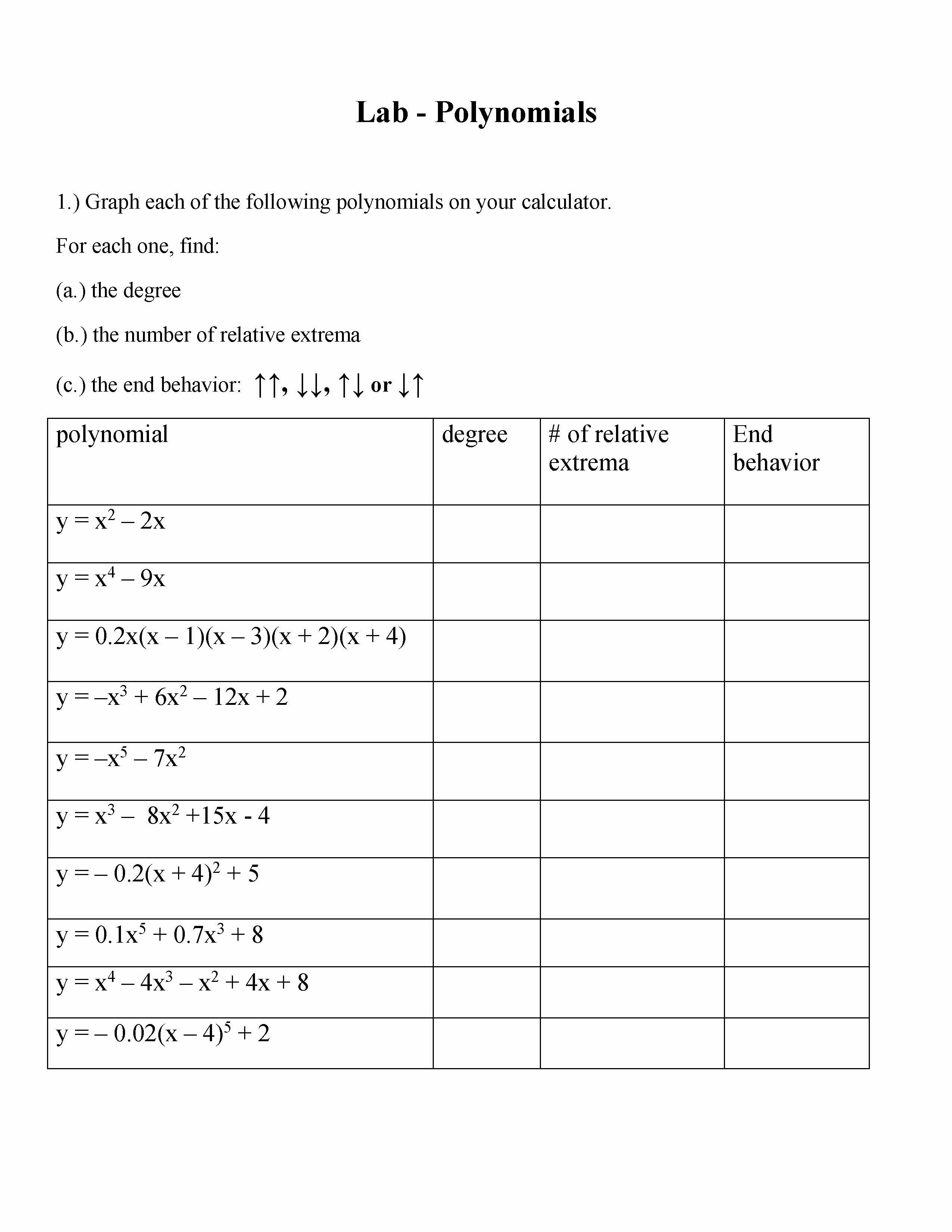 Lab - Polynomials 1.) Graph each of the following polynomials on y...