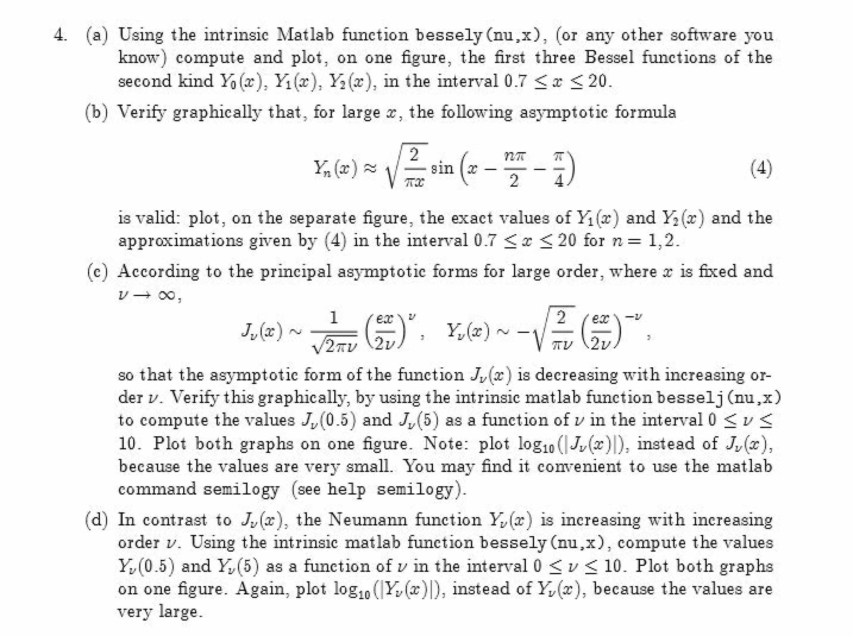 3. Using the intrinsic Matlab function besselj (nu,x), (or Mathemat...