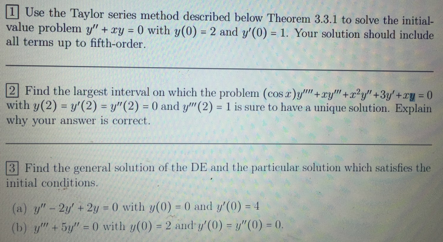 1 Use the Taylor series method described below Theorem 3.3.1 to so...