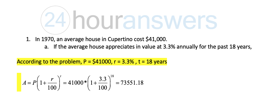 1. In 1970, an average house in Cupertino cost $41,000. a. If the...