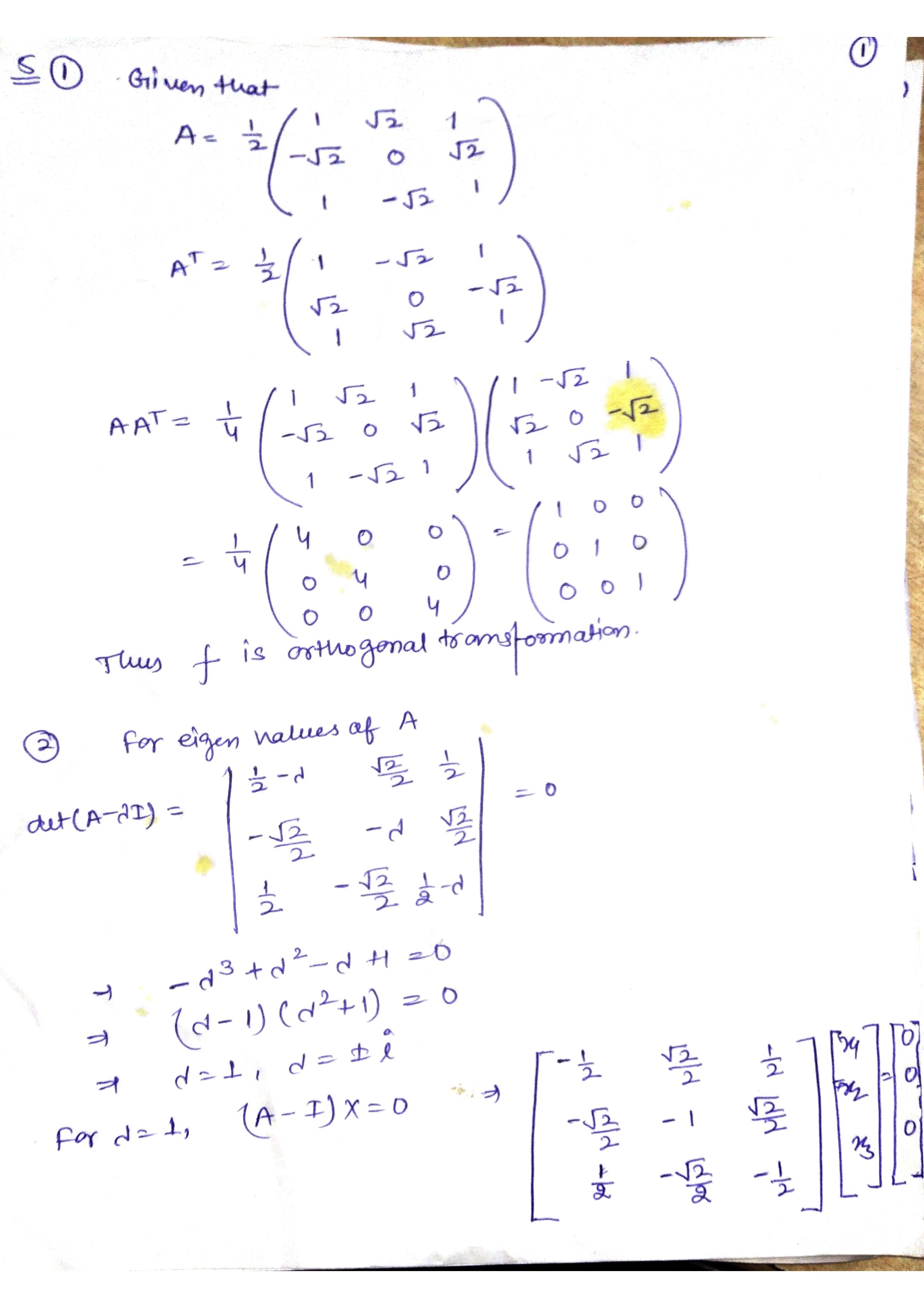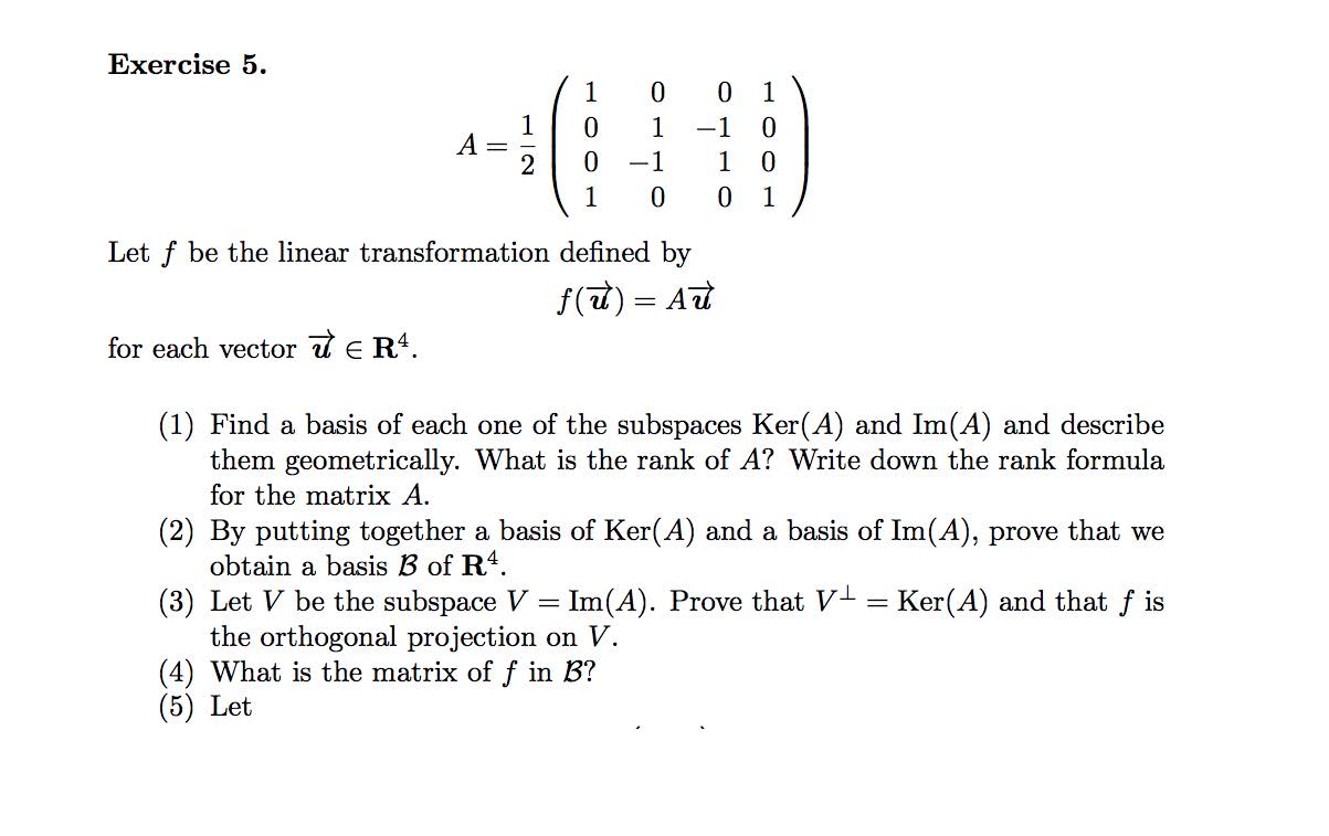 Exercise 5. 1 1 1 -1 1 1 1 1 Let f be the linear transform...