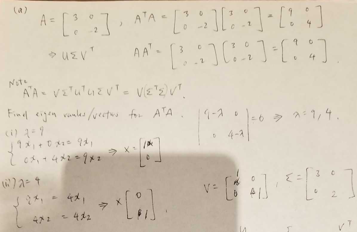 4.1 Determine SVDs of the following matrices (by hand calculation)...