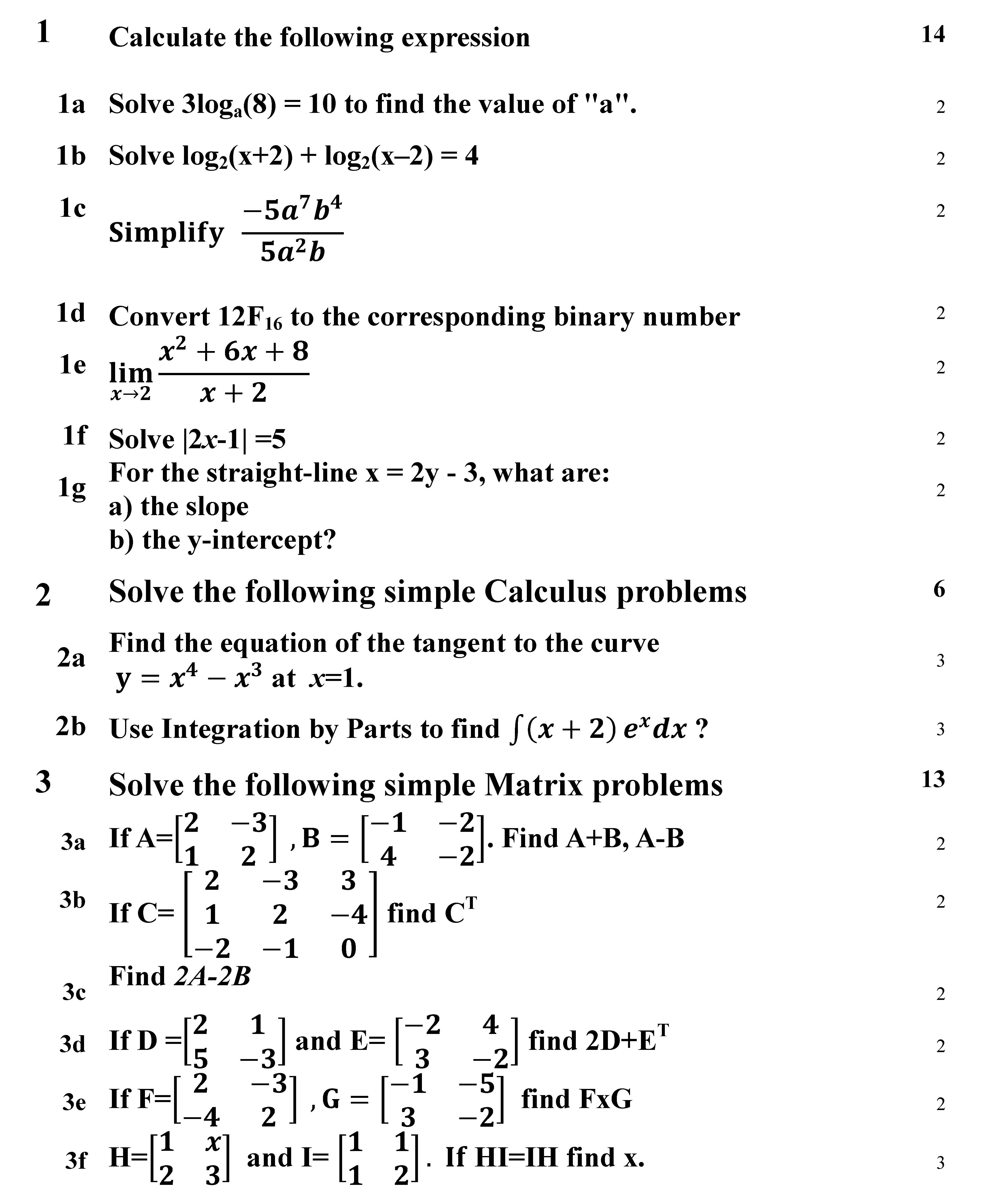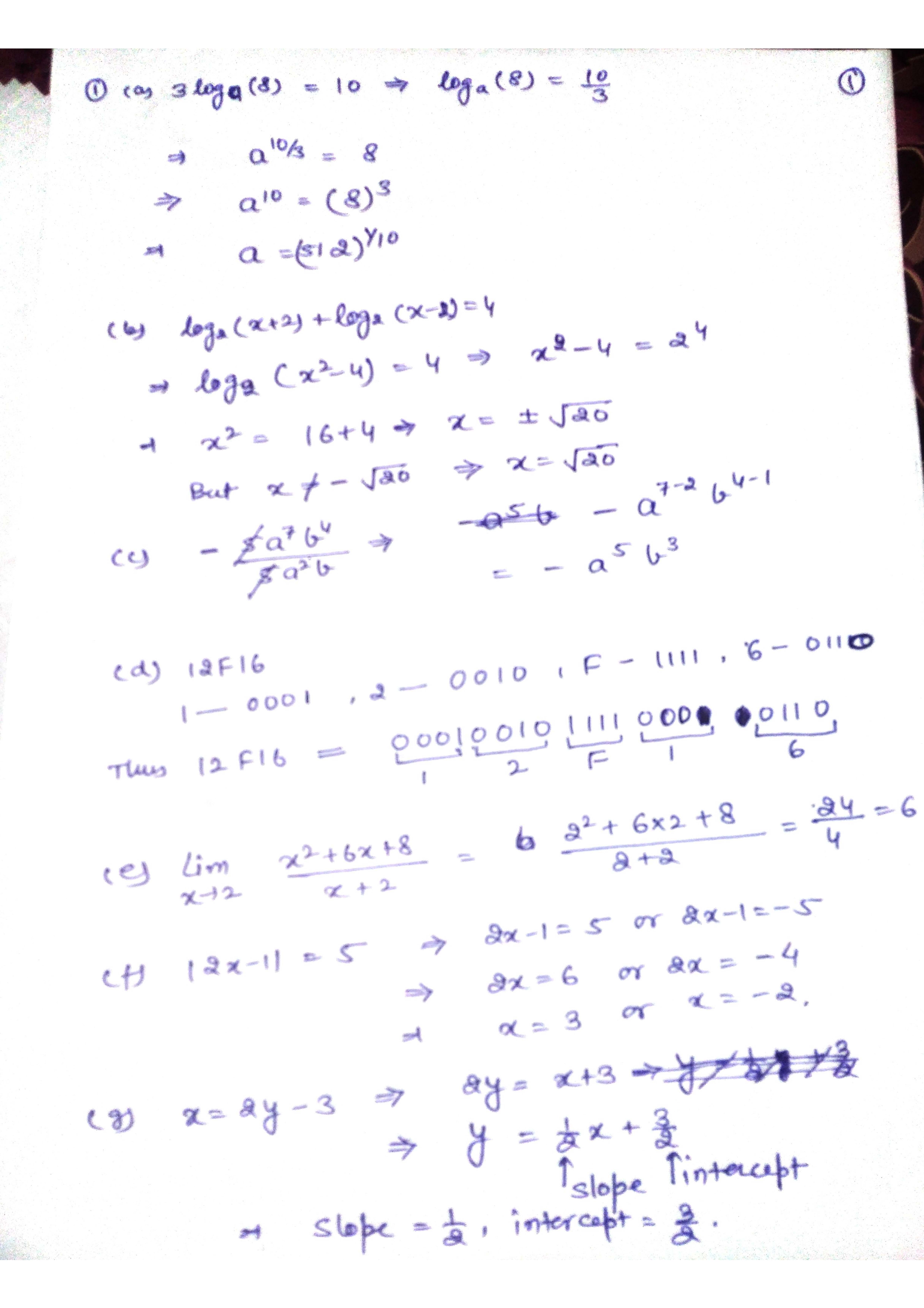 1 Calculate the following expression 14 1a Solve 3loga(8) = 10 t...