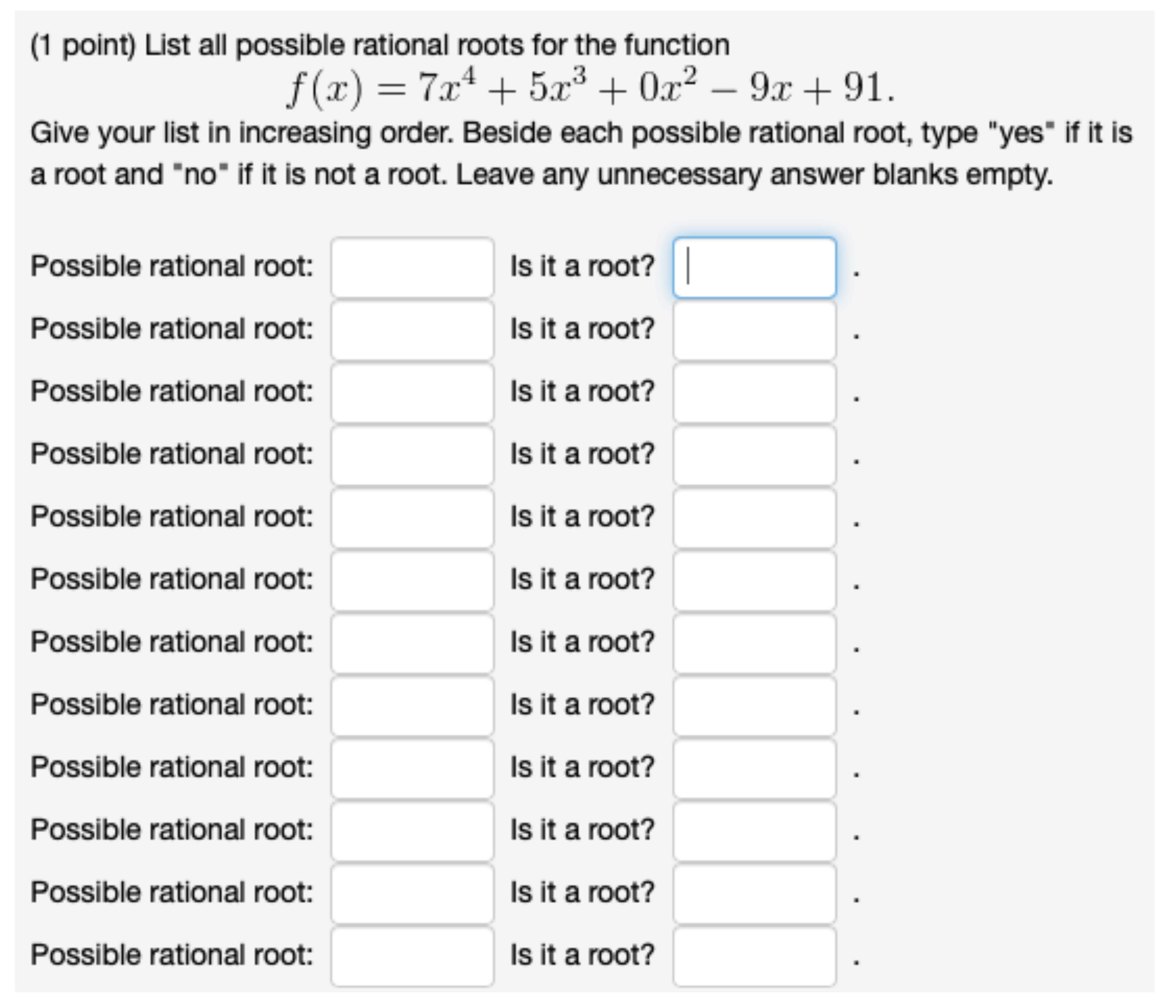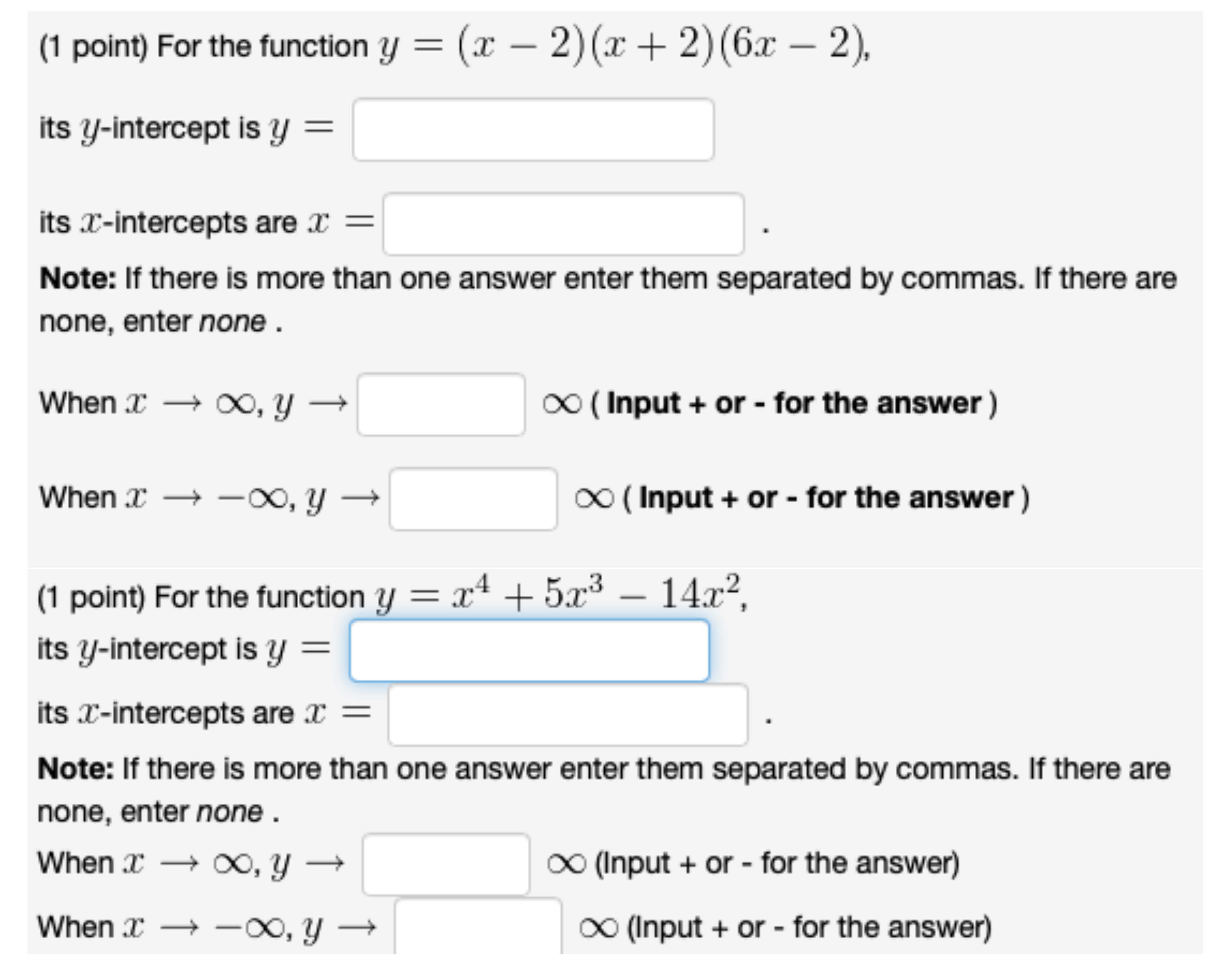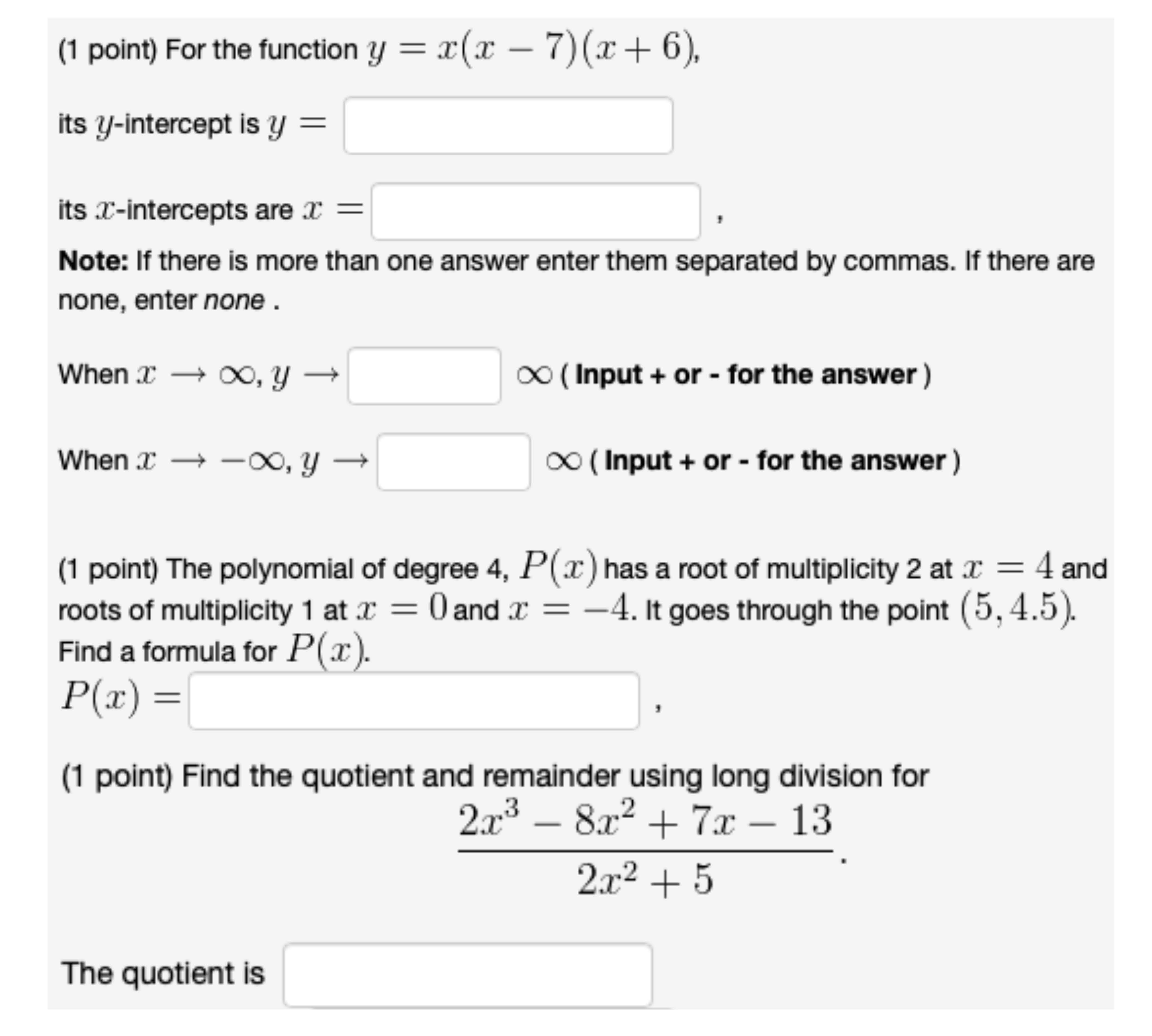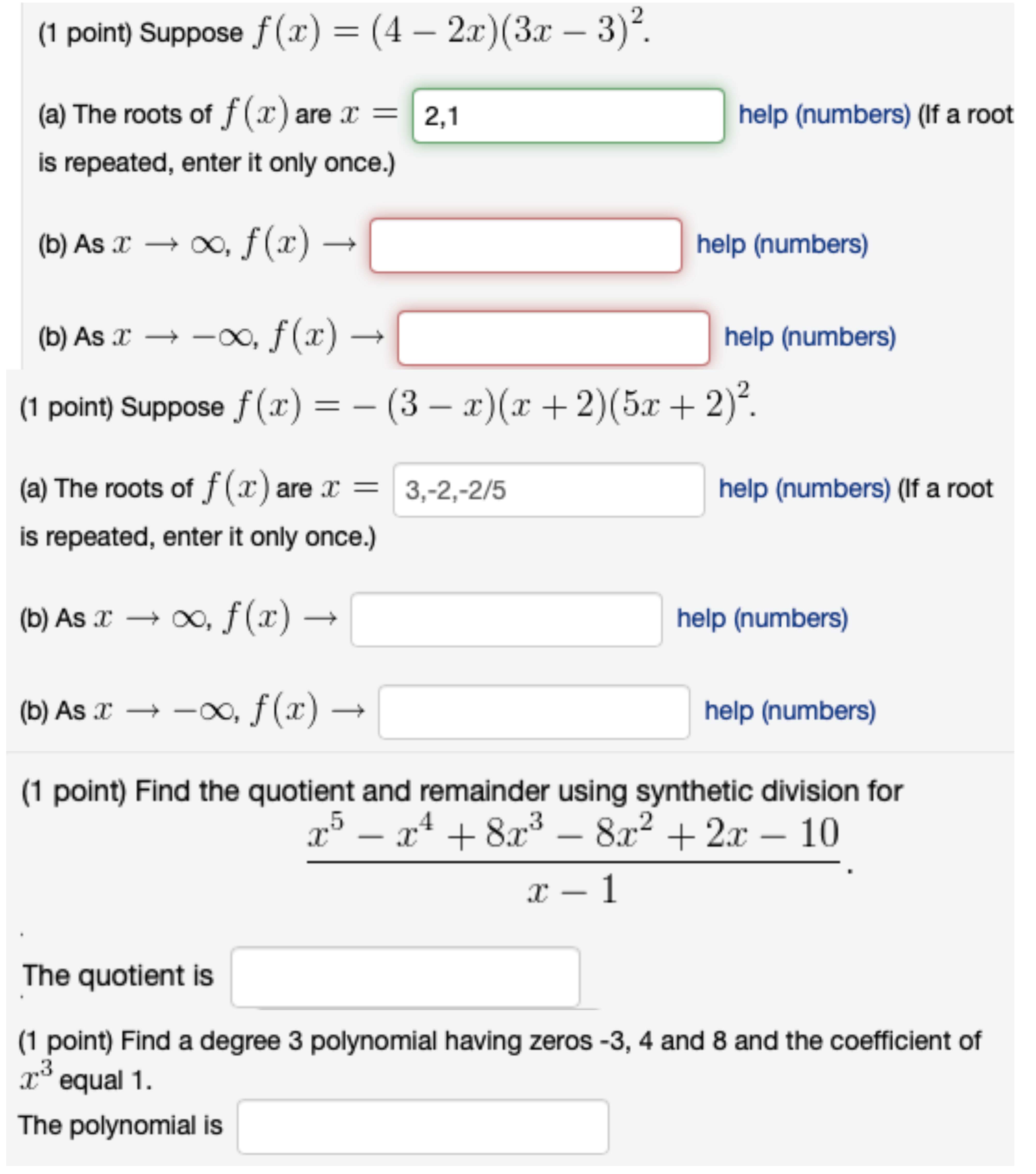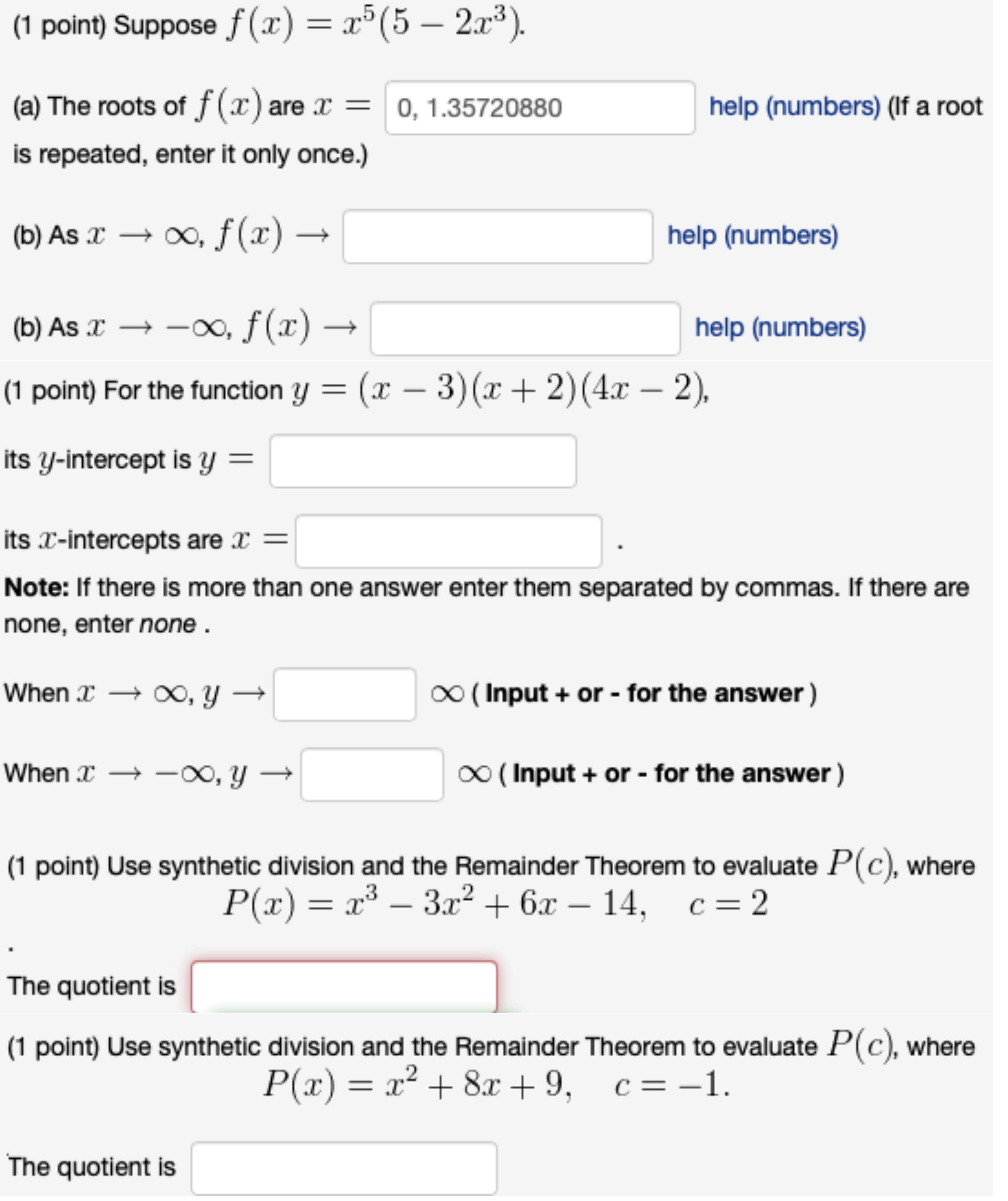 (1 point) Suppose f ( x) = x5 ( 5 - 2x3 ). (a) The roots of f ( x)...