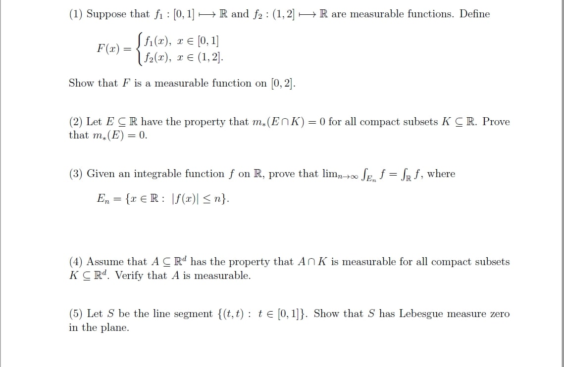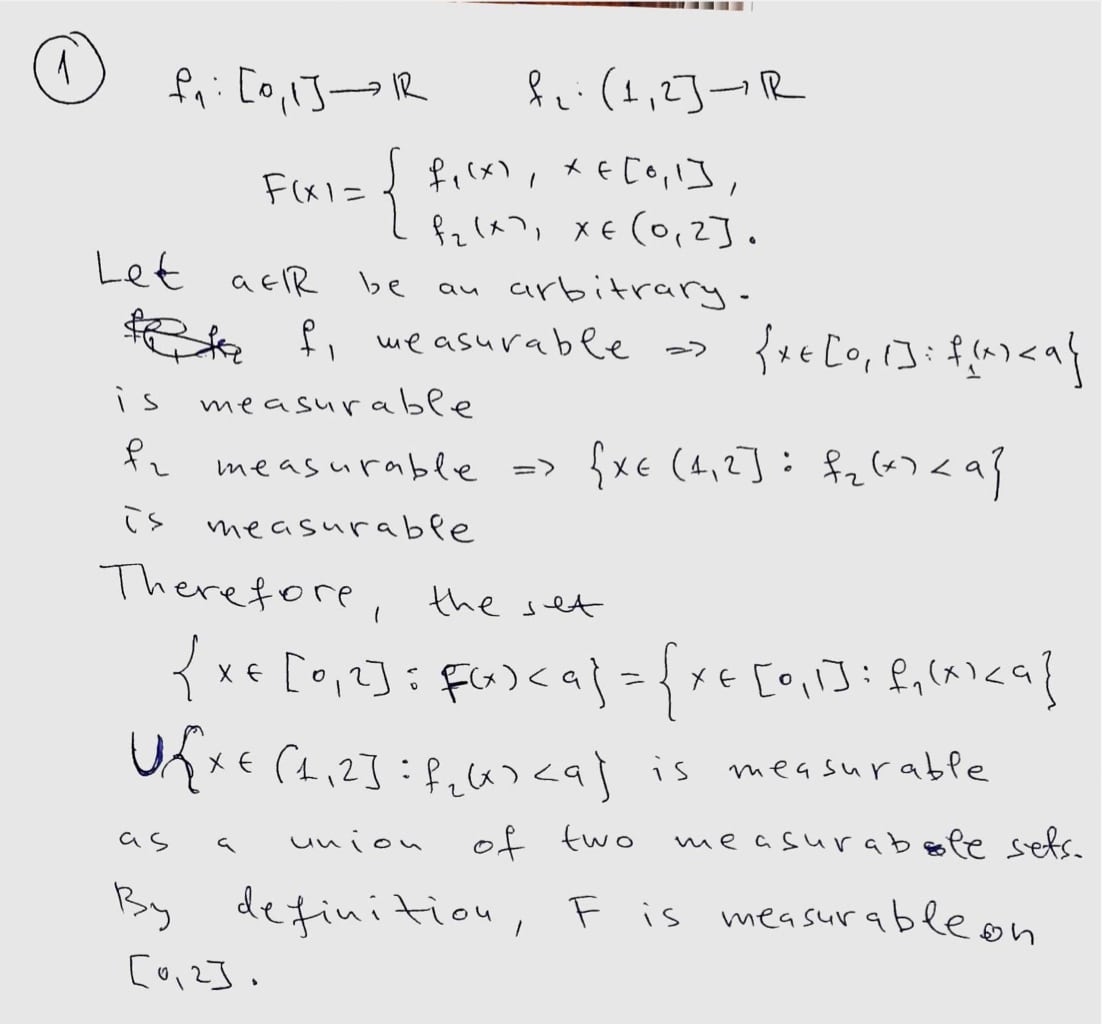 (1) Suppose that f1 : [0,1] R and f2 : (1, 2] R are measurable func...
