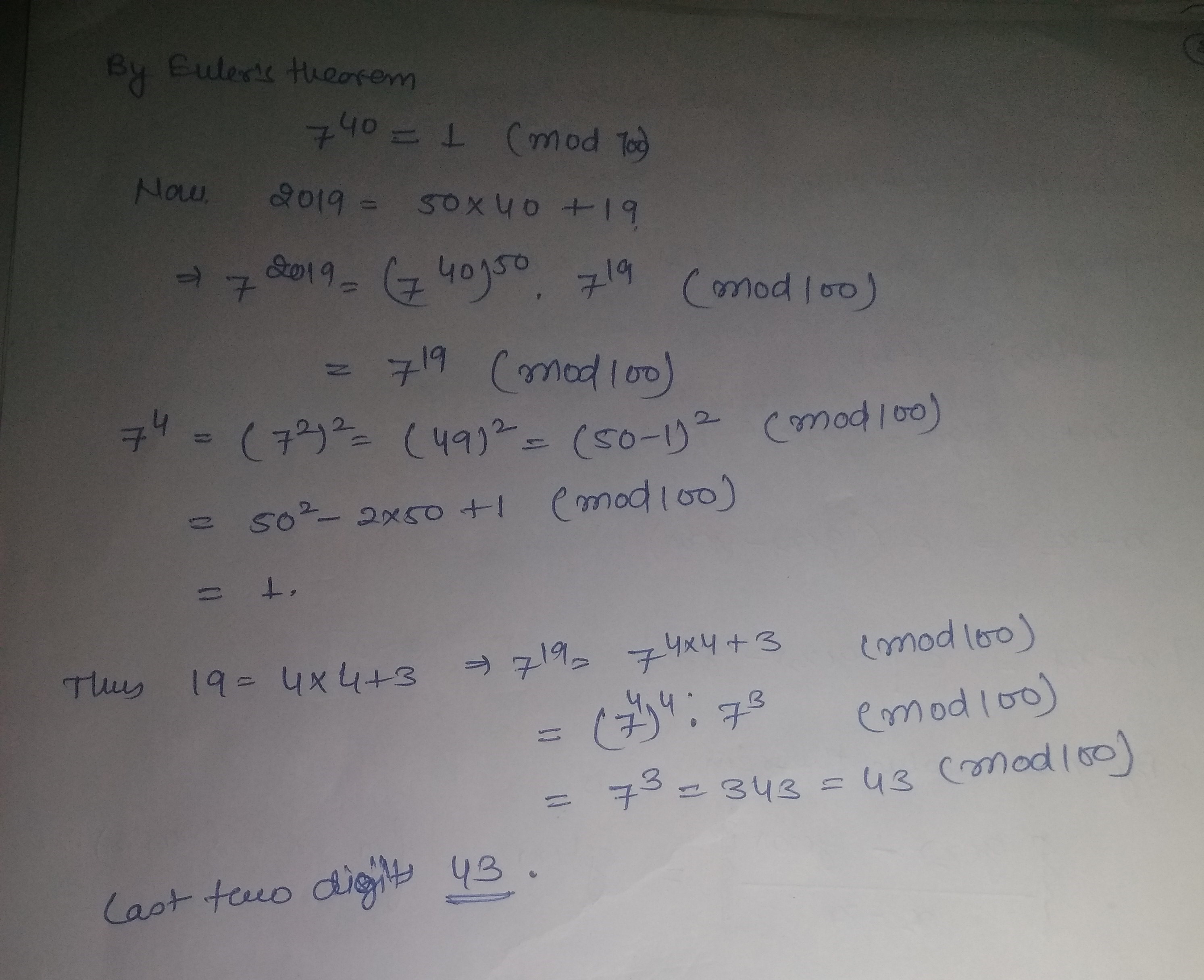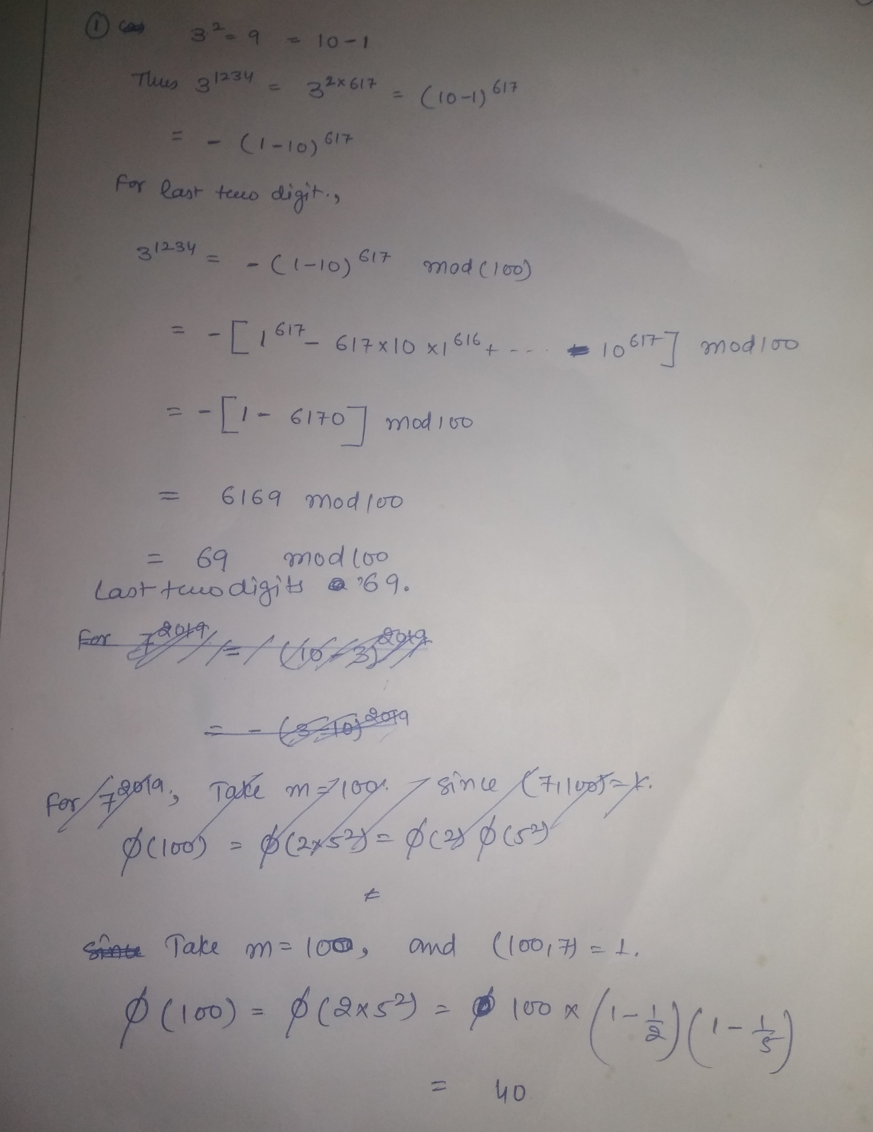 1. What are the last two digits of 3¹²³ⴠand 7²â°Â¹â¹? [20...