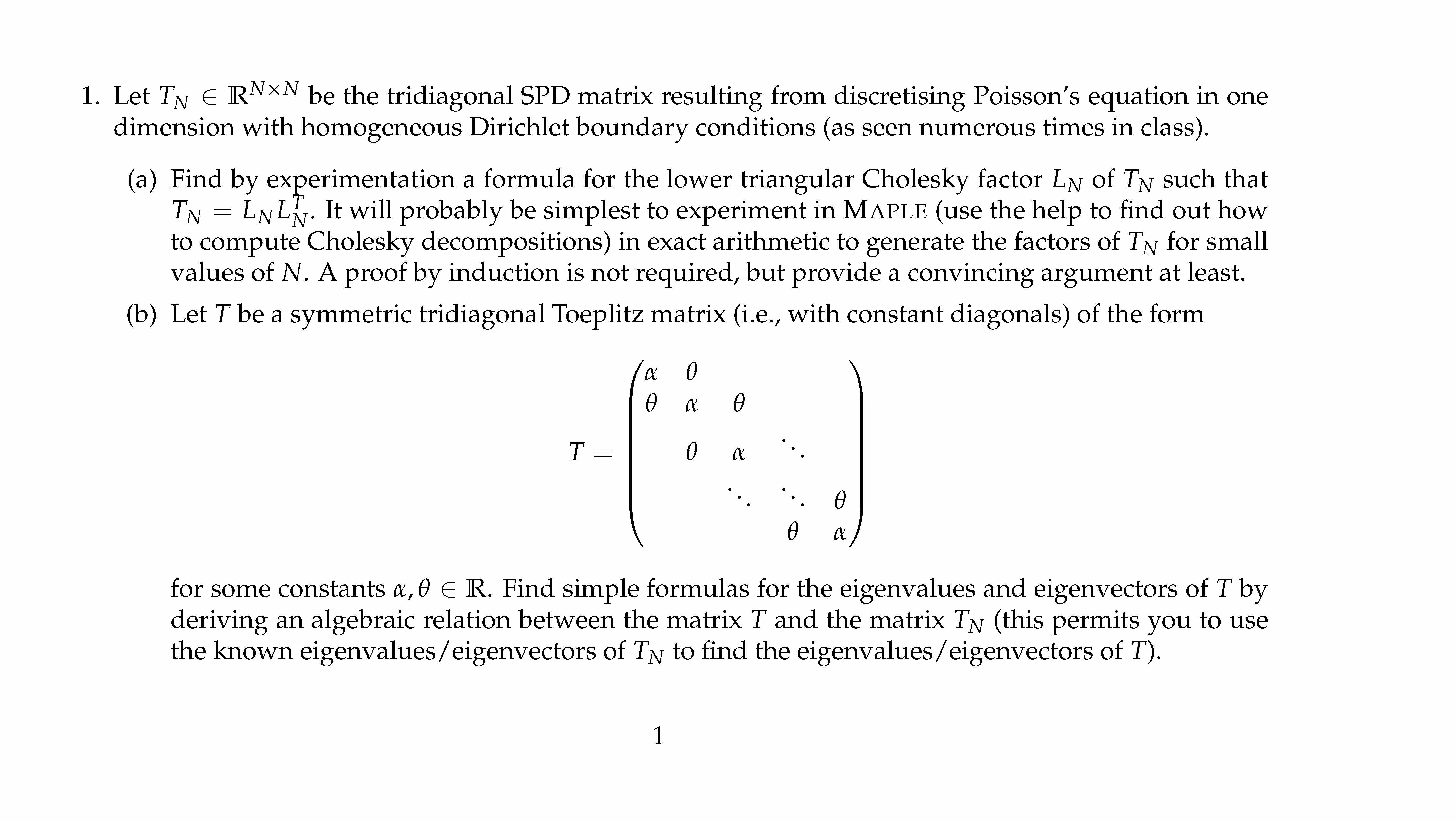 1. Let Tr RNXN be the tridiagonal SPD matrix resulting from dis cr...