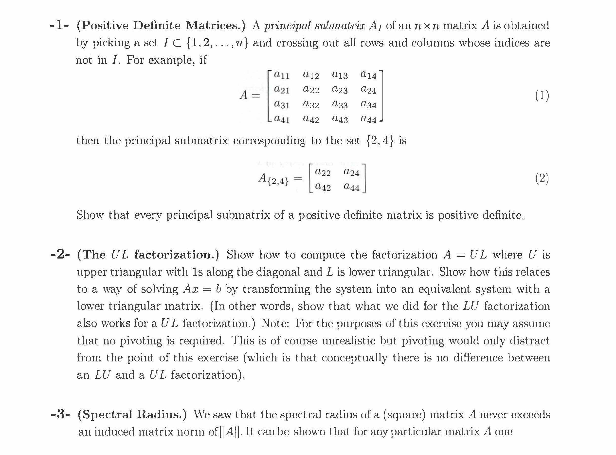 -1- (Positive Definite Matrices.) A principal submatrix A1 of an nx...