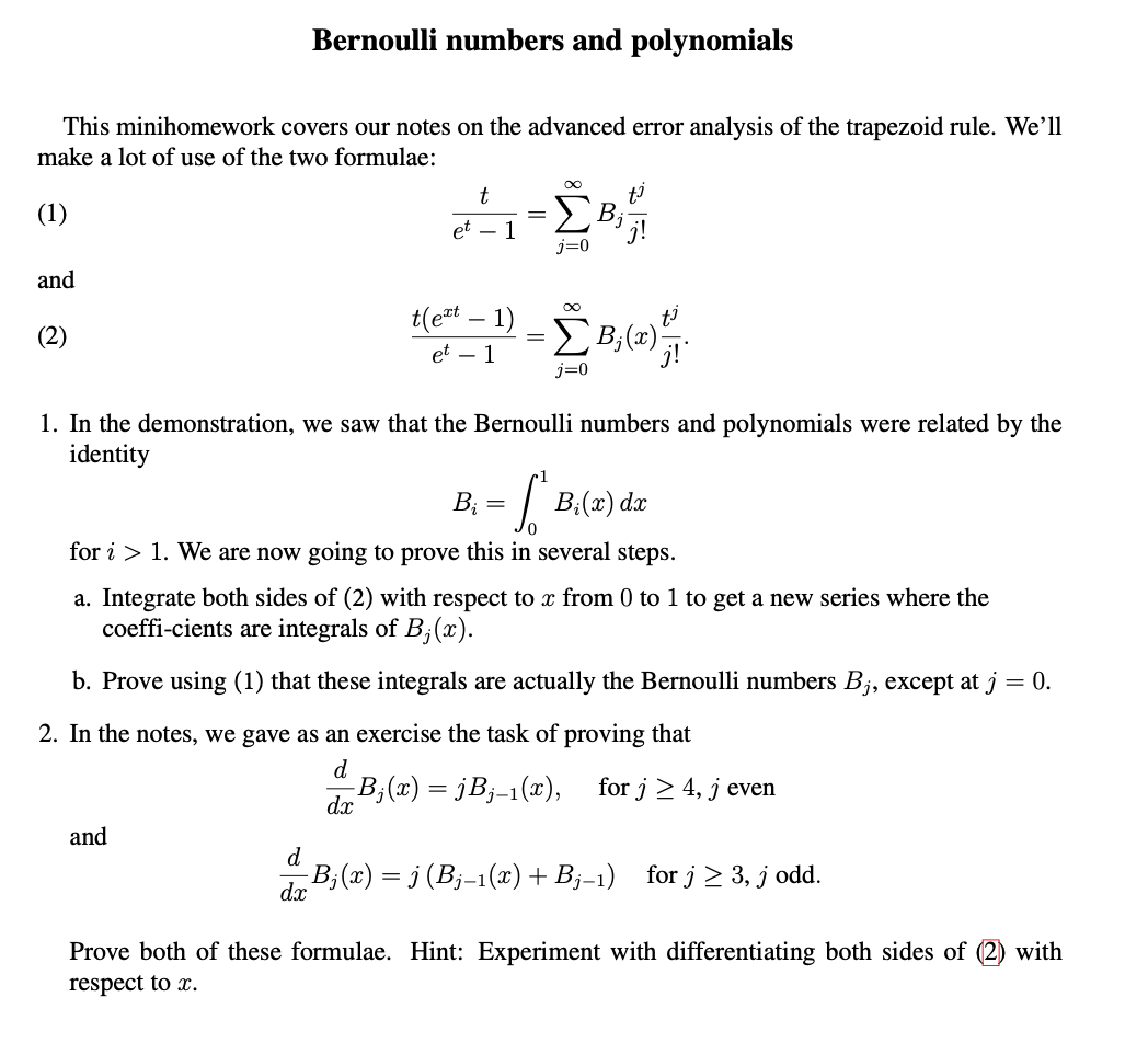 Bernoulli numbers and polynomials This minihomework covers our not...