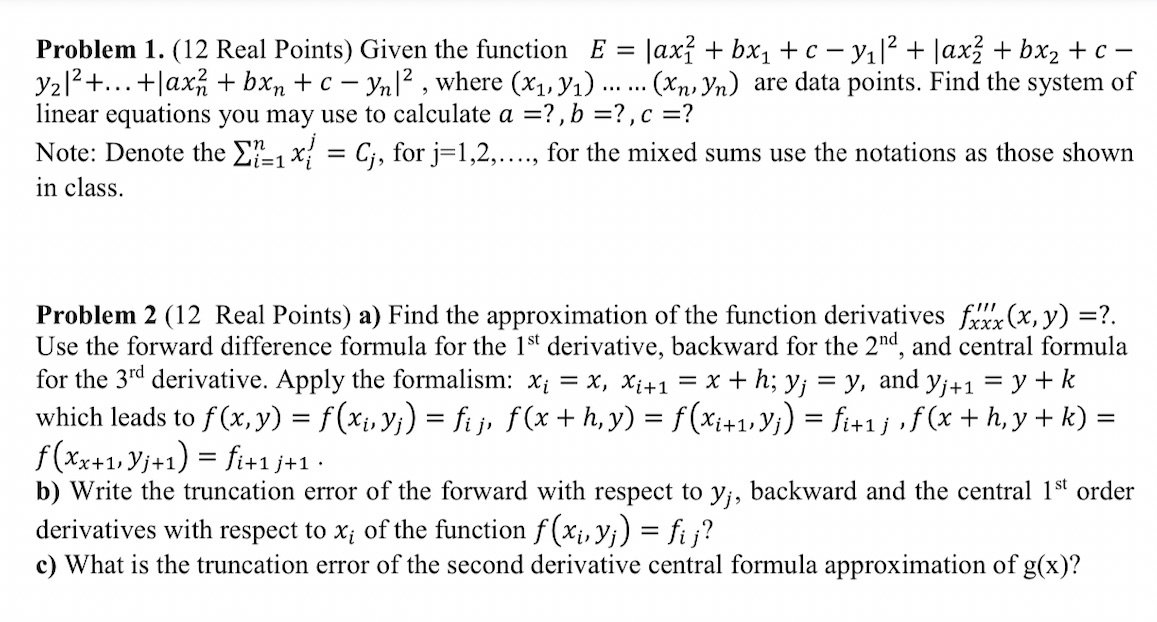 Problem 1. (12 Real Points) Given the function E = |ax2 + bx1 + C -...