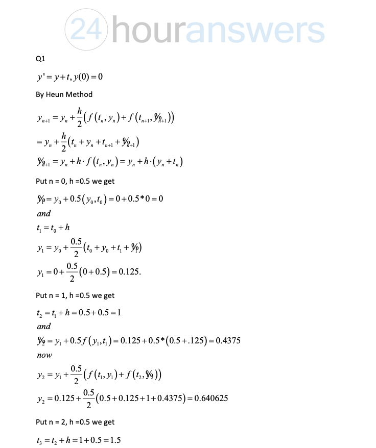 1. y′ =t+y, y(0)=0 0≤t≤4 Compare the true solu...
