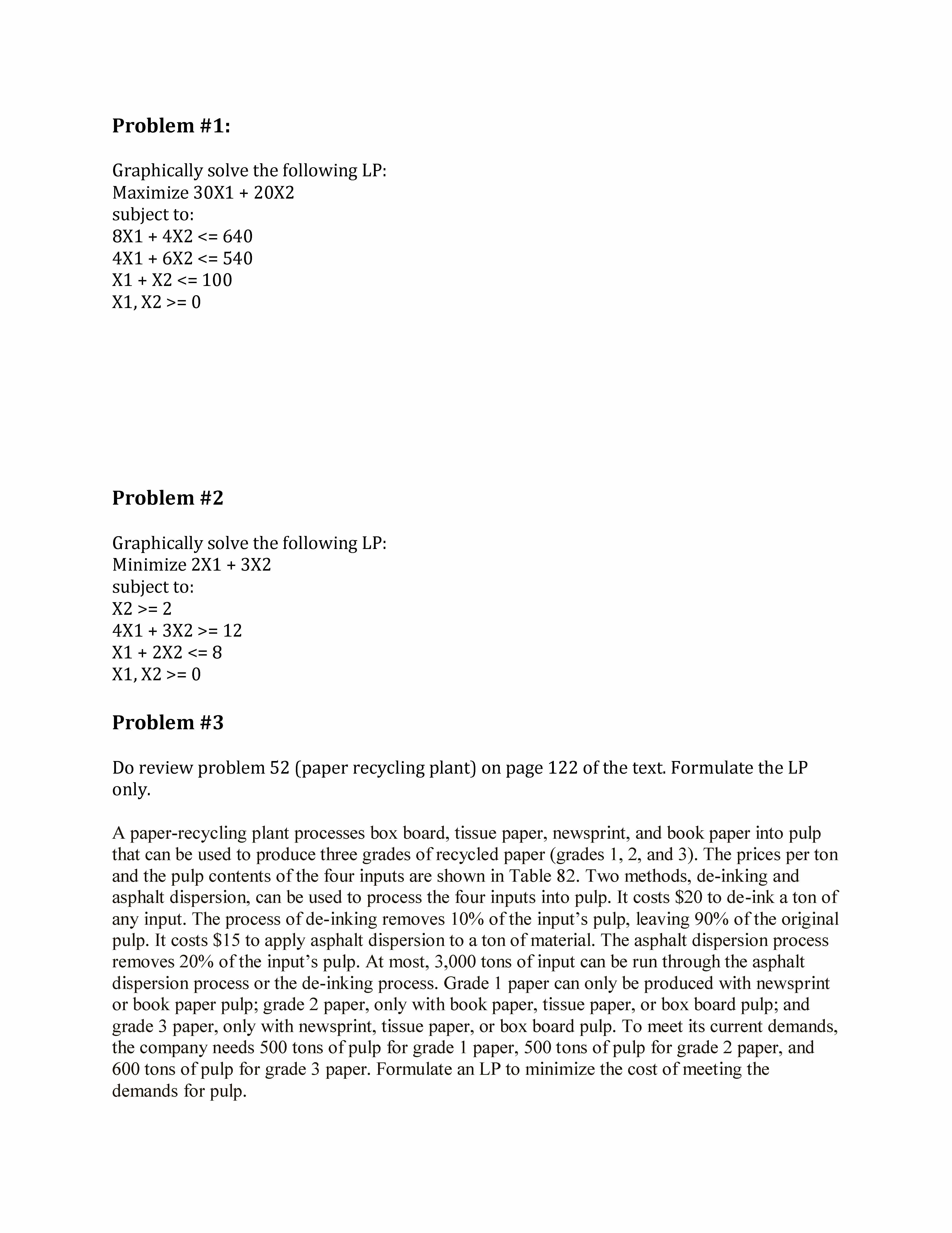 Problem #1: Graphically solve the following LP: Maximize 30X1 + 2...