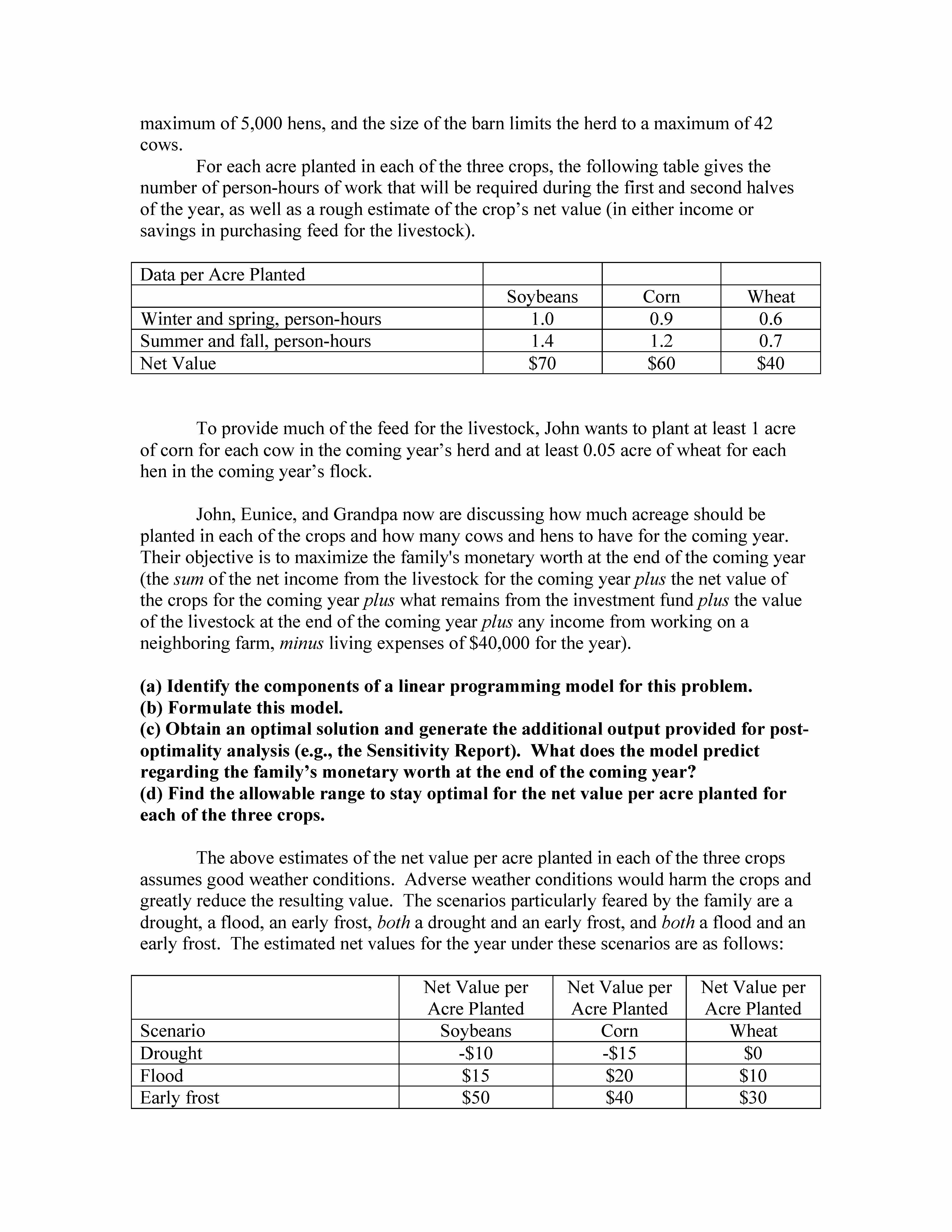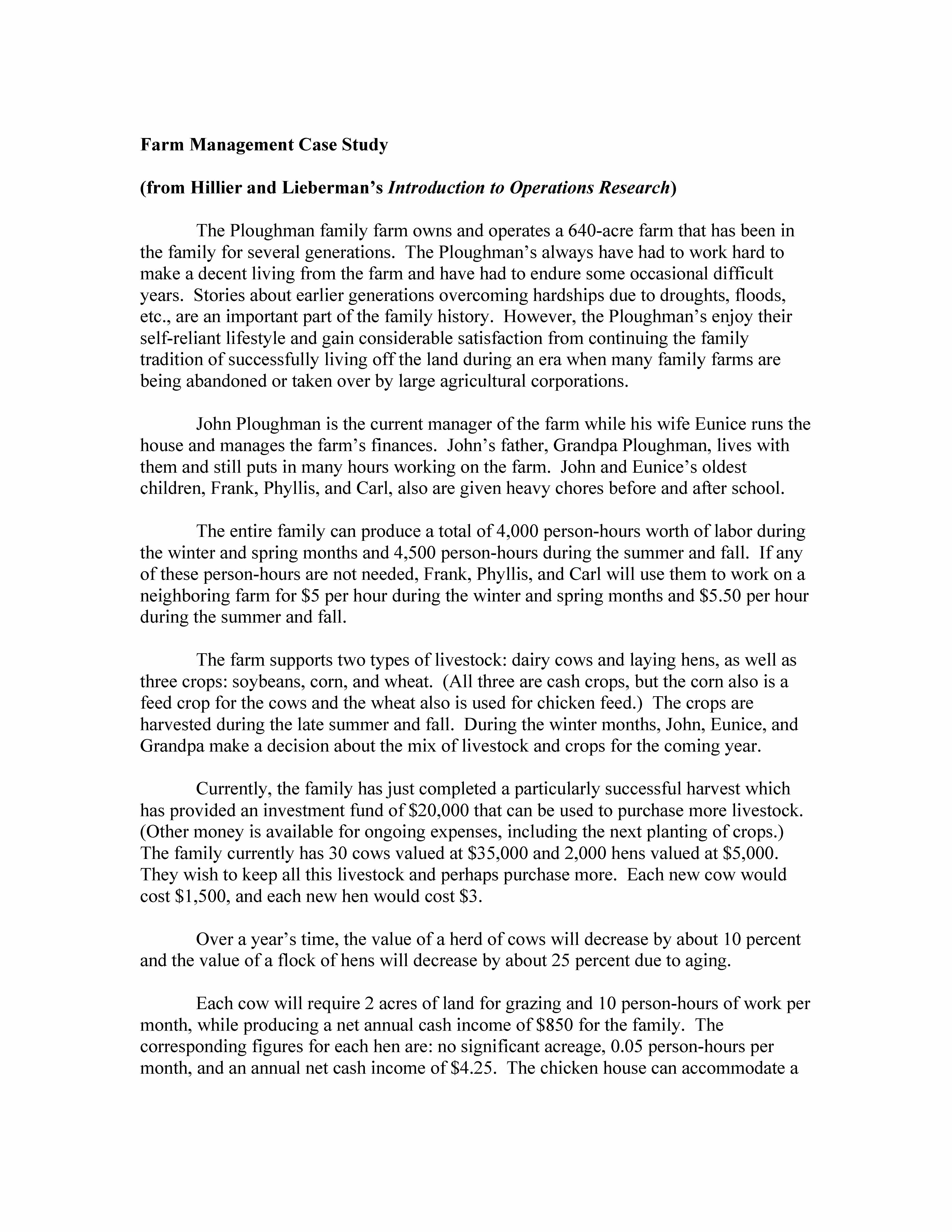 Farm Management Case Study (from Hillier and Lieberman's Introduct...
