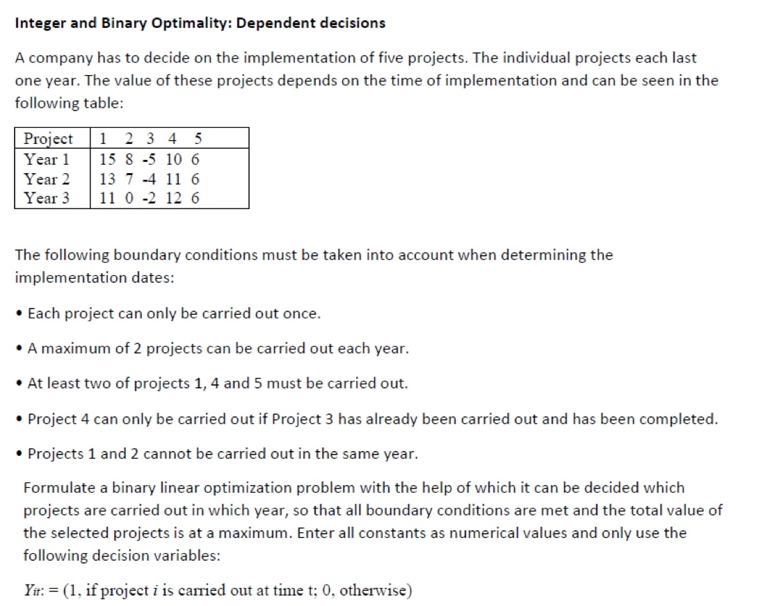 Integer and Binary Optimality: Dependent decisions A company has t...