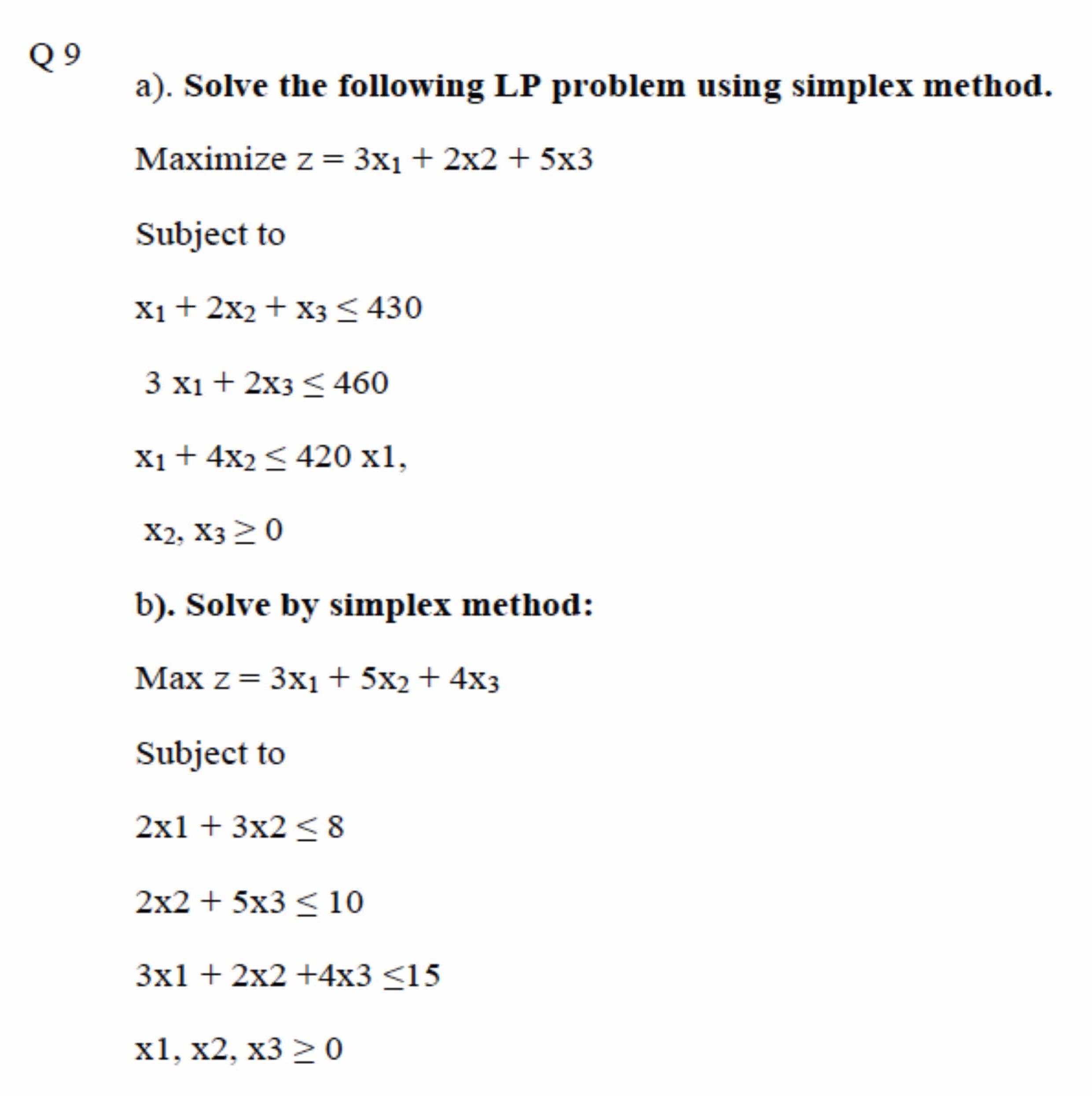 Q9 a). Solve the following LP problem using simplex method. Maxim...