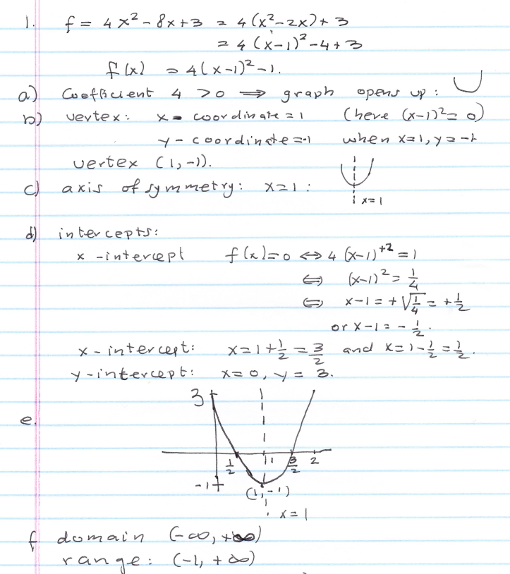 1. Consider the function f(x)=4x²-8x+3 or f(x)=4x²-8x+3 A. Deter...